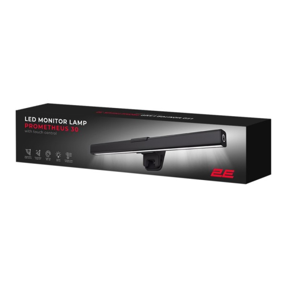 2E PROMETHEUS 30 — це LED лампа, спеціально розроблена для освітлення робочого простору перед екраном. Вона не створює бліків на екрані, забезпечуючи комфортну роботу в будь-який час доби. Лампа має стильний чорний корпус з алюмінію та керується за допомогою сенсорної панелі.