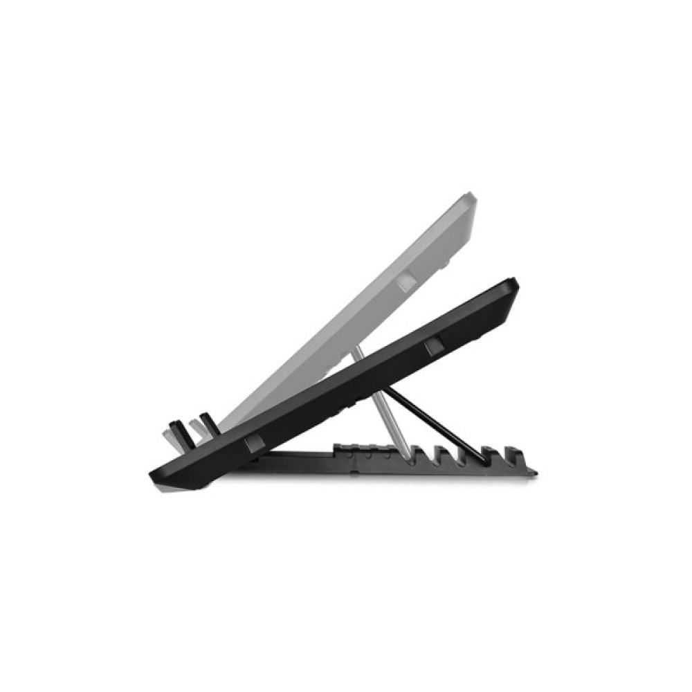 Високошвидкісне USB 3.0 підключення дозволяє підключати зовнішні жорсткі диски безпосередньо до порту підставки. Регулювання кута нахилу підставки збереже ваше здоров'я. Розслабилися, розважаєтесь або працюєте, сидите або лежите, U Pal підлаштується під вашу позу, використовуючи будь-який з шести можливих кутів нахилу. Два вбудованих 14 см вентилятора обертаються на 1000 оборотів в хвилину, залишаючи ноутбук холодним. Шум, однак, залишається помірним, щоб не відволікати вас від роботи або навчання.