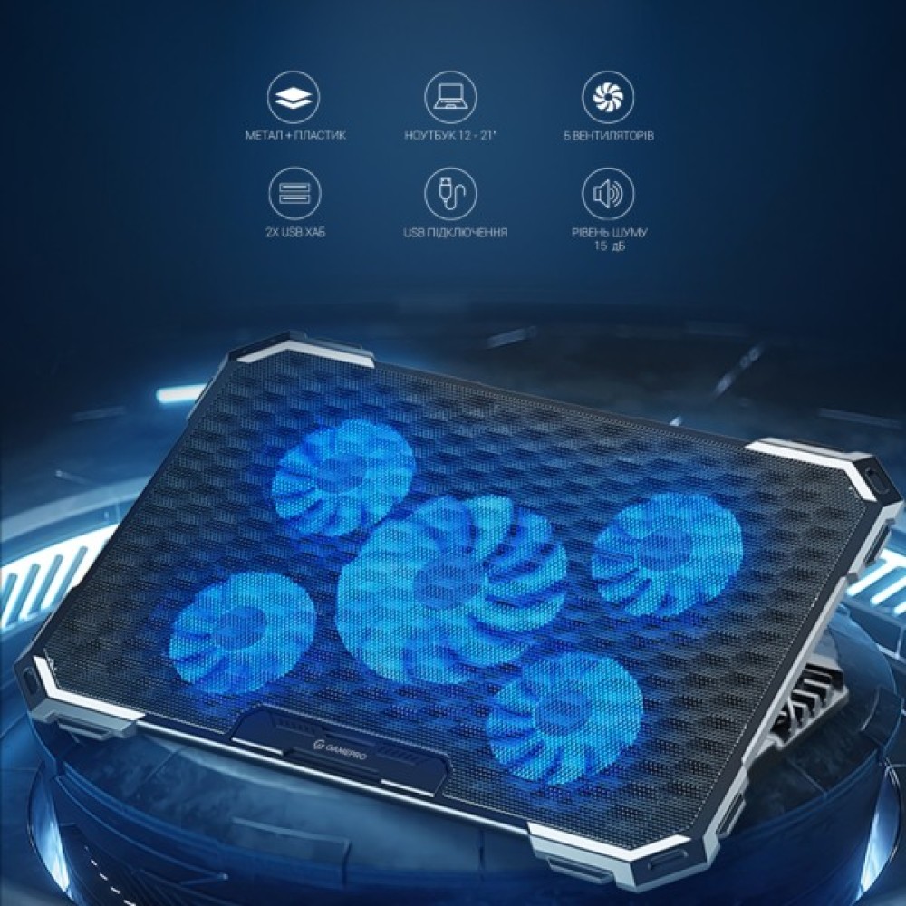 GamePro CP485 виготовлена з високоякісних матеріалів, таких як АБС-пластик і металева сітка. Їхнє поєднання надає підставці стійкості та довговічності, а також приємного зовнішнього вигляду.
