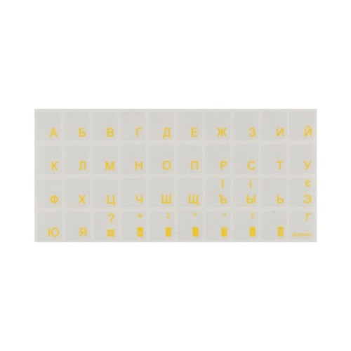 AIN yellow виготовлені з високоякісного матеріалу і покриті спеціальним тонким захисним шаром, який запобігає стиранню букв і подовжує термін служби наклейки. Наклейки на клавіатуру