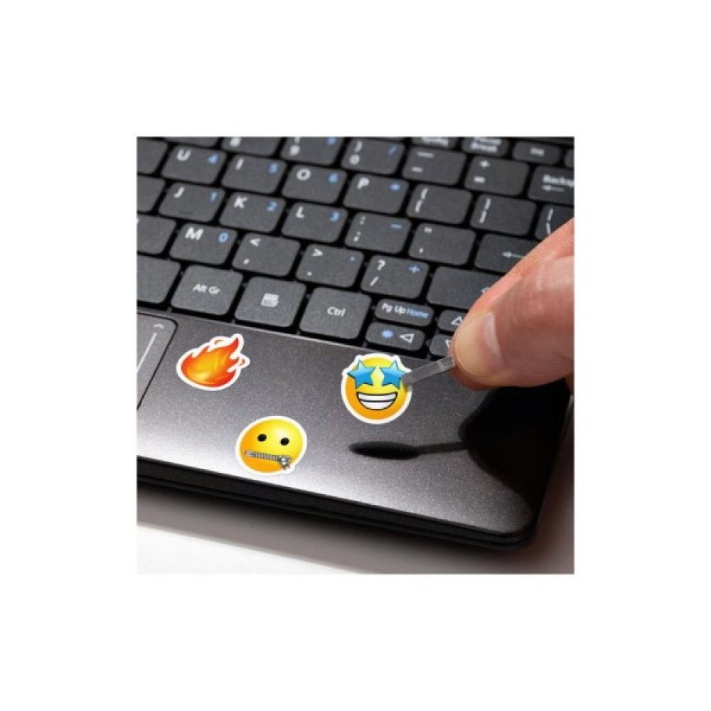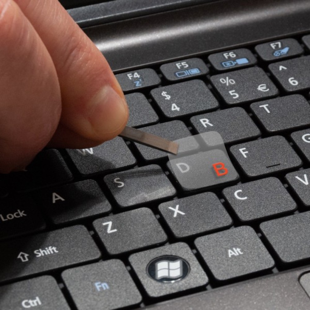 - Наклейки виготовлені з м'якої ПВХ плівки, що робить наліпки майже непомітними на клавіатурі і створюють вигляд оригінальних букв