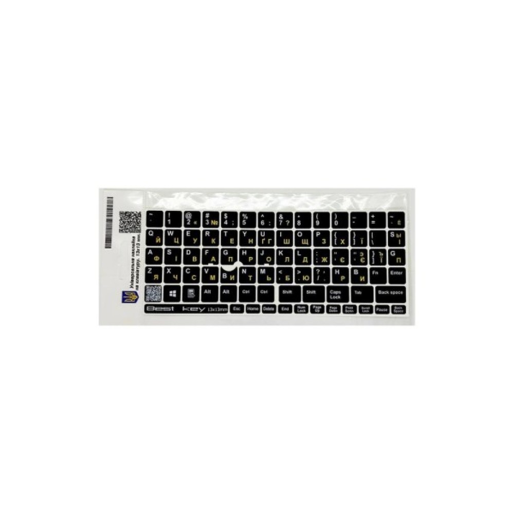 Наклейка на клавіатуру BestKey непрозора чорна, 76, жовта (BKU13YEL/012) англійська, українська, російська, непрозора, чорна