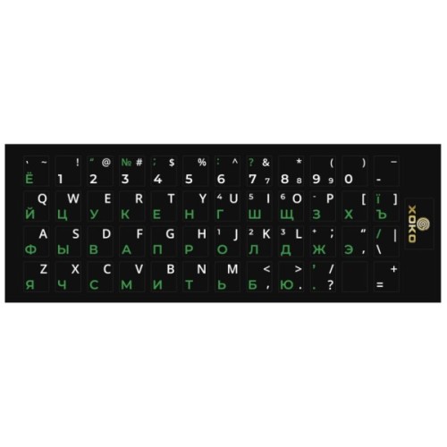 Наклейка на клавіатуру XoKo 48 keys UA/rus green, Latin white (XK-KB-STCK-SM)