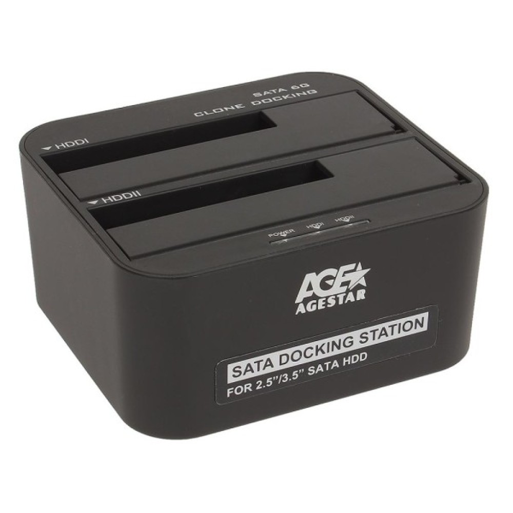 Особливості док-станції AgeStar 3UBT6-6G: проста установка і видалення пристрою. Підтримує USB3.0 зі швидкістю передачі даних до 5 Гбіт / с. Підходить для 2.5 "/3.5" SATA HDD або SSD. Реалізована функція відновлення Backup. Два відсіку для жорстких дисків.