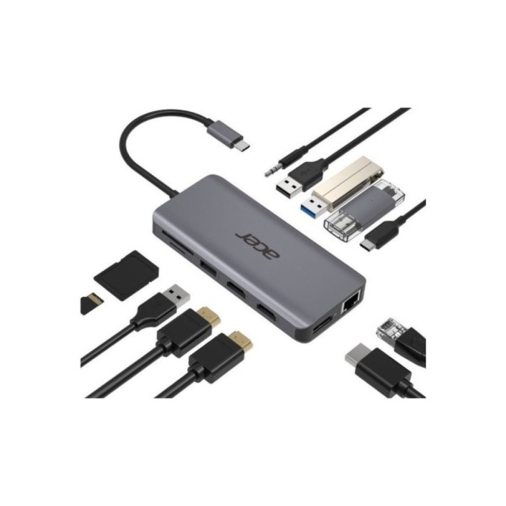 Док-станція Acer 12in1 Type C dongle: 2xUSB3.2, 2xUSB2.0, 1xSD/TF, 2xHDMI, 1xPD, 1xDP, 1xRJ45, 1x3.5 Audio