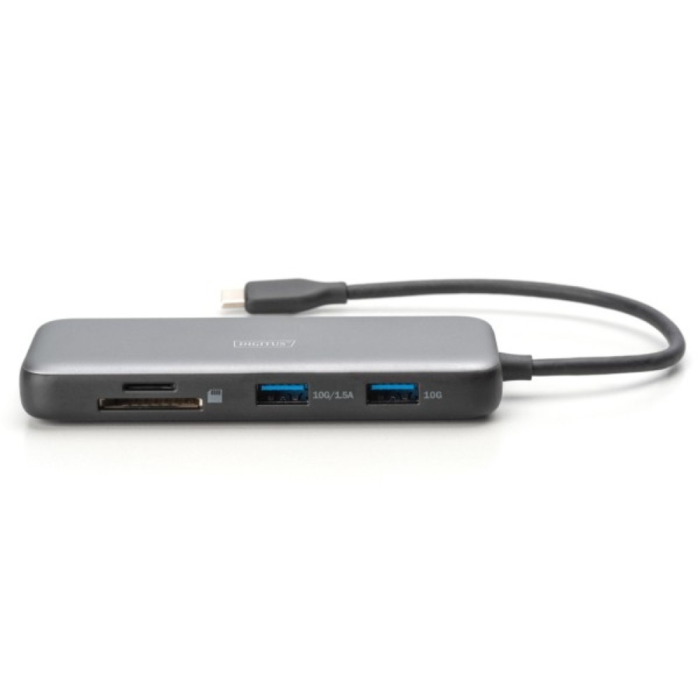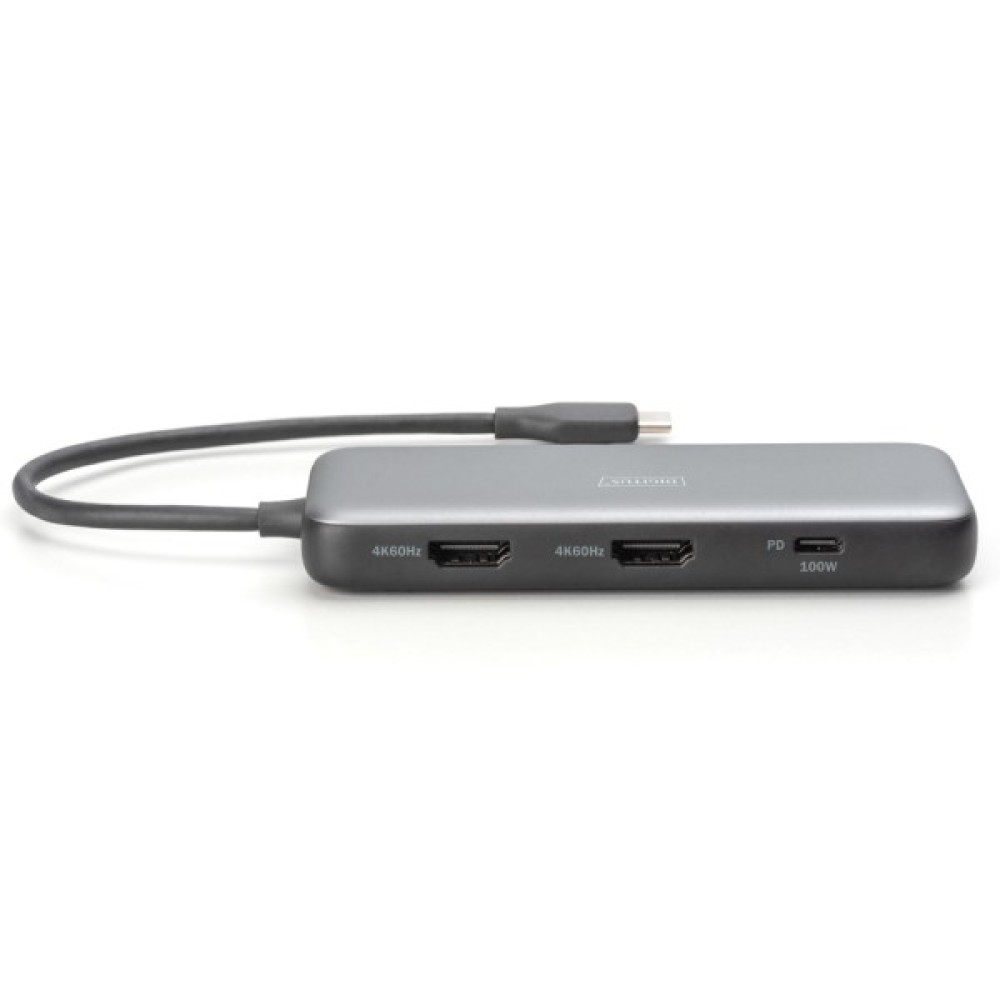 Розширте можливості свого ноутбука за допомогою 8-портової док-станції USB-C. Завдяки двом портам HDMI ви можете підключити два зовнішні монітори з роздільною здатністю 4K і збільшити простір на екрані. У режимі SST (дублювання екрану) док-станція підтримує два монітори з роздільною здатністю 4K/60 Гц. У режимі MST (розширення екрану) вона підтримує два монітори з роздільною здатністю 2x 4K/60 Гц. Працюйте ефективніше, використовуючи кілька програм одночасно на різних екранах. Два порти USB-A 3.2 Gen 2 (10 Гбіт/с) забезпечують надшвидку передачу даних і безперешкодне використання зовнішніх пристроїв. Порт Gigabit Ethernet (RJ45) забезпечує надійне мережеве з'єднання, а вбудовані кард-рідери (SD/MicroSD) дозволяють швидко передавати дані з карт пам'яті. Порт USB-C Power Delivery дозволяє заряджати ноутбук, не перериваючи з'єднання, завдяки функції PD 3.0 Fast Role Swap. Вбудований з'єднувальний кабель USB-C довжиною 20 см забезпечує гнучкість підключення, а підтримка HDR гарантує вражаючу якість зображення.