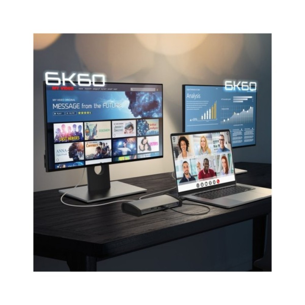 Ця док-станція Thunderbolt 4 перетворить ваш ноутбук Mac або Windows на повноцінну робочу станцію з трьома виходами Thunderbolt 4. Підтримує роздільну здатність для двох дисплеїв до 4K або для одного дисплея до 8K. Ідеально підходить для контенмейкерів, професіоналів та ентузіастів, яким потрібні дисплеї з високою роздільною здатністю для найкращого візуального досвіду.