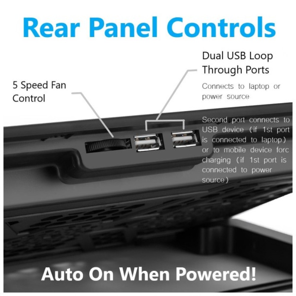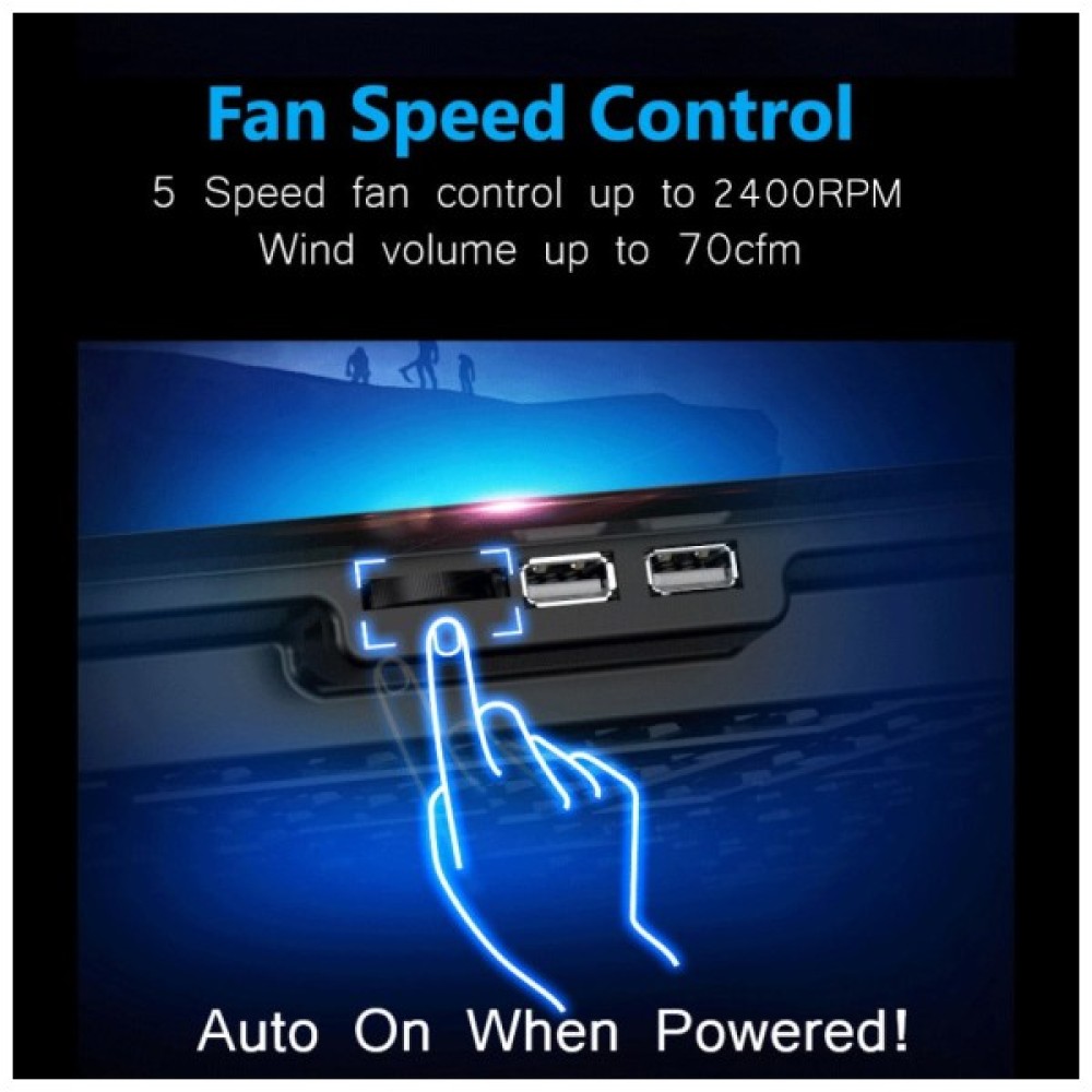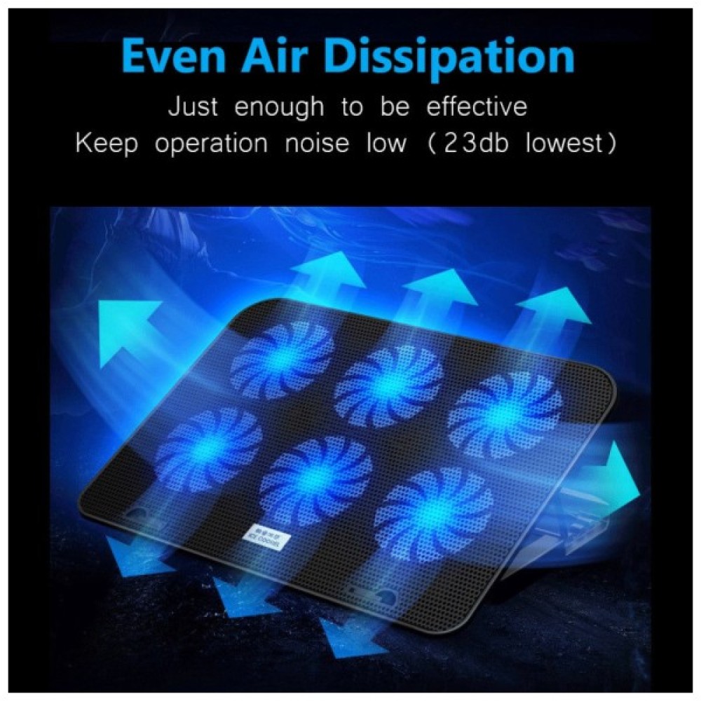 Особливістю підставки є шість вентиляторів розміром 60x60x15 мм кожен, що працюють на швидкості 2500 об/хв ±10%. Завдяки цим вентиляторам, підставка забезпечує ефективне охолодження ноутбука навіть при тривалій інтенсивній роботі.