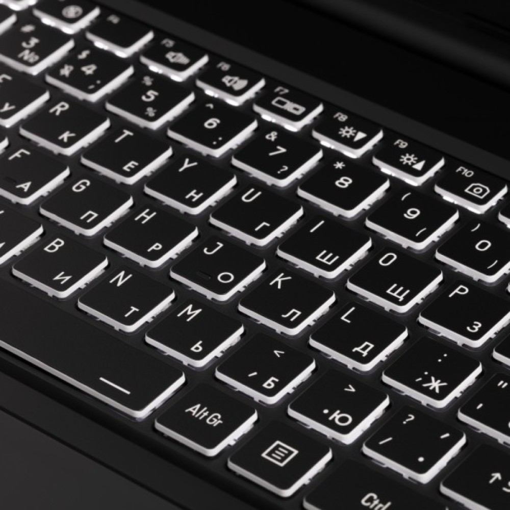 Повнорозмірна клавіатура з калькуляторним блоком праворуч має повну українську локалізацію та біле підсвічування. Можна перемикати профілі енергоспоживання: безшумний, економний, універсальний та продуктивний. Батарея збільшеної ємності 50 Вт * год, чого вистачає до 12 годин автономної роботи.