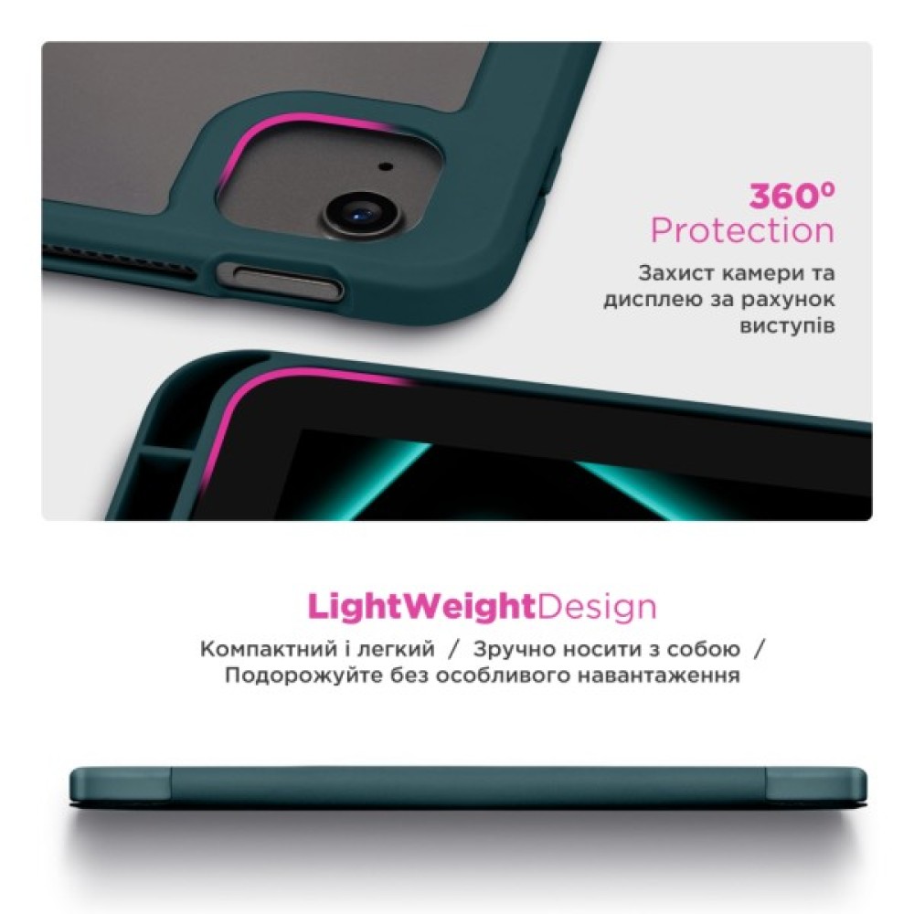 Матеріали, з яких виготовлений чохол, забезпечують надійний захист планшета. Передня панель виконана з якісної PU шкіри, що приємна на дотик і стійка до зносу. Прозора задня спинка з акрилу не лише захищає пристрій, але й дозволяє демонструвати оригінальний дизайн планшета, а бокові сторони з гнучкого TPU забезпечують додаткову амортизацію при ударах.