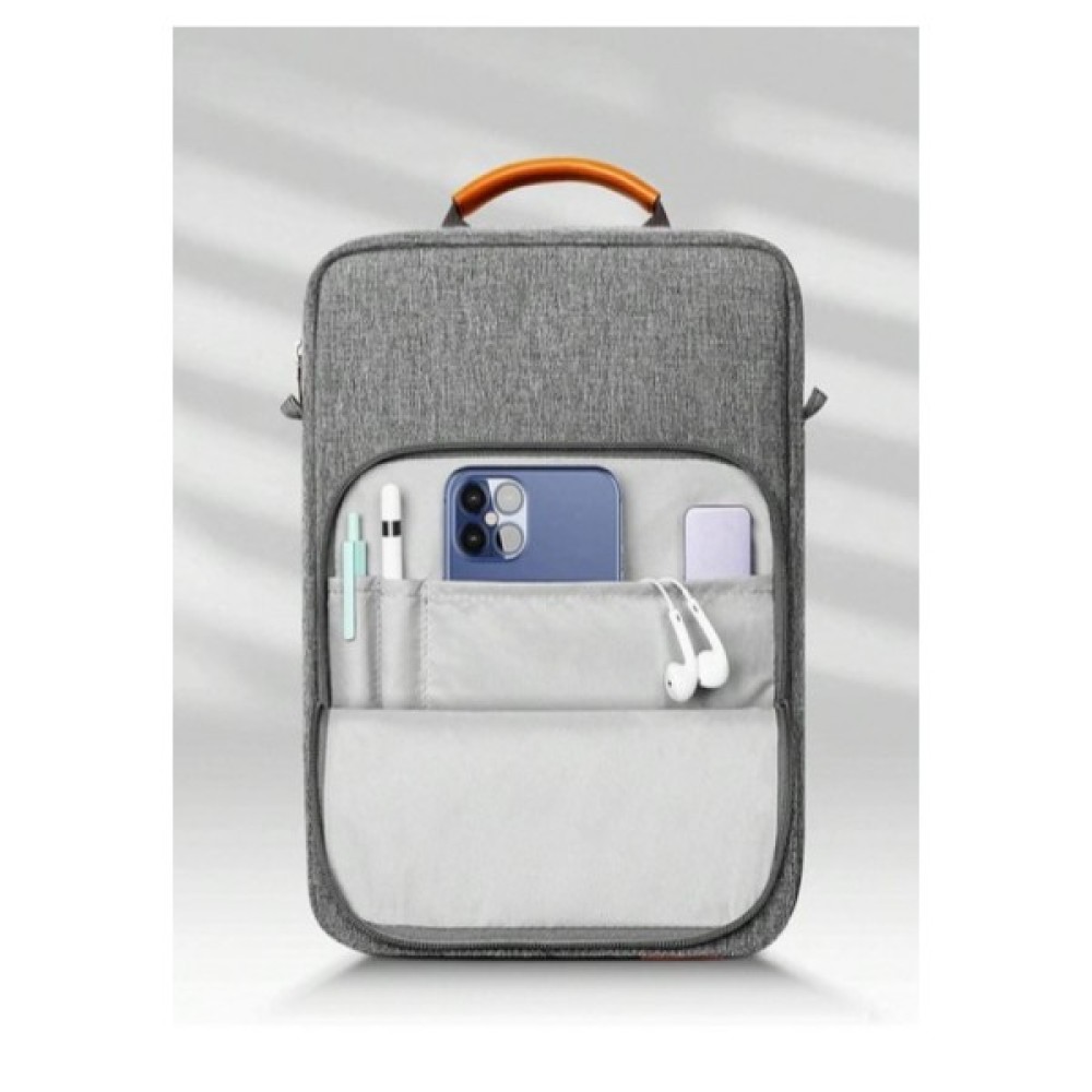 Внутрішній простір сумки продуманий до дрібниць: він дозволяє безпечно розмістити пристрій, а також супутні аксесуари, такі як зарядний пристрій, миша або блокнот. Додаткові кишені забезпечують зручний доступ до дрібних предметів, таких як ключі або мобільний телефон, що робить ще більш практичним використання сумки.