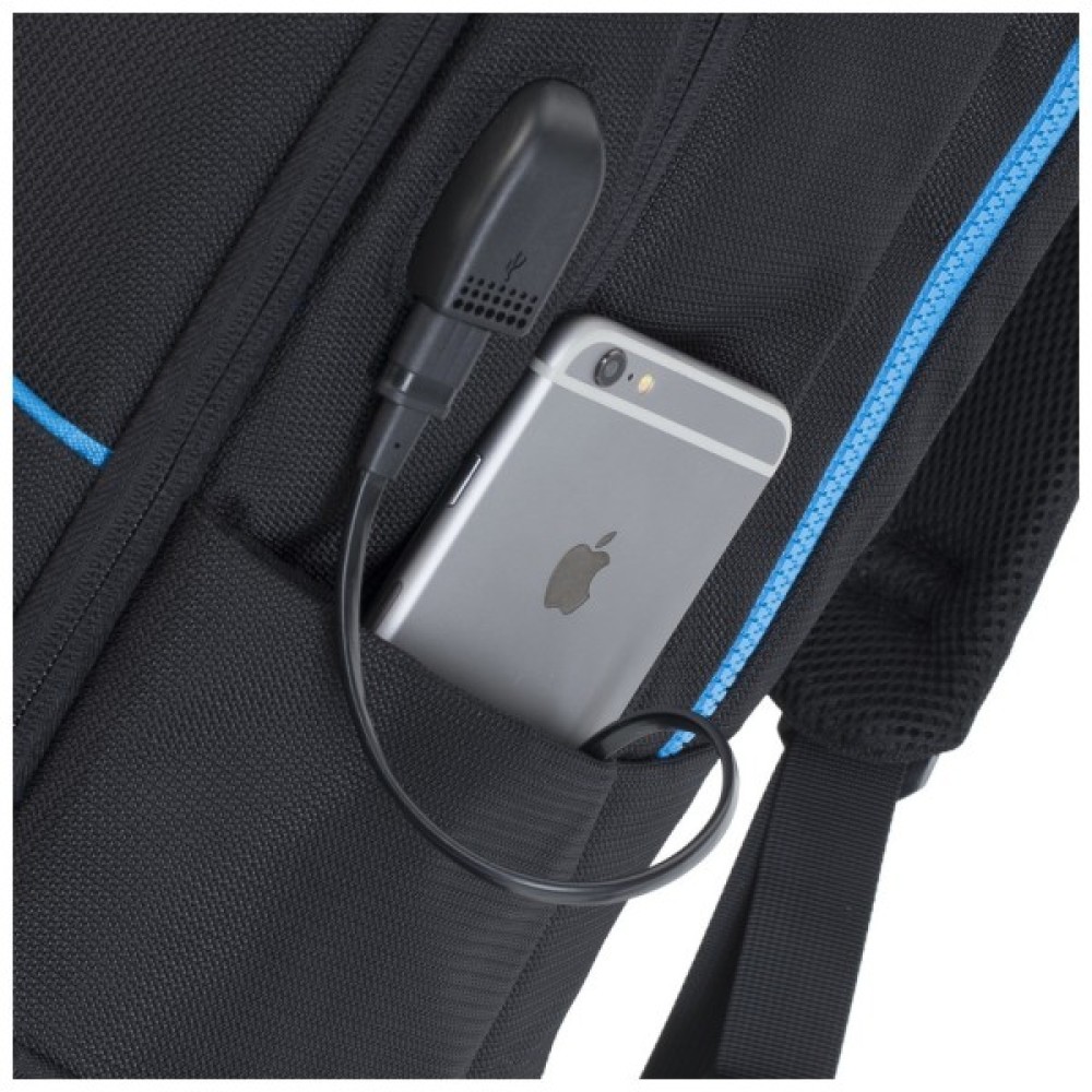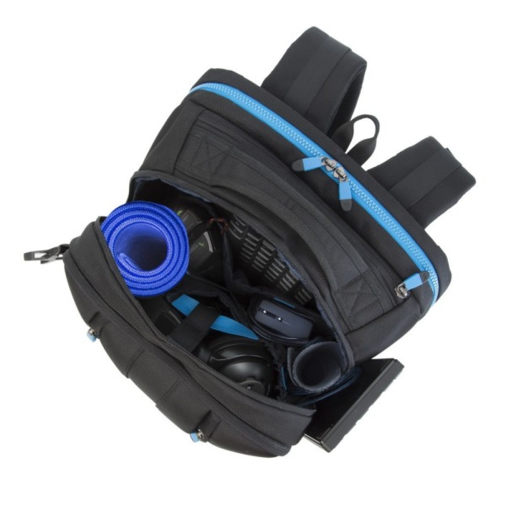 Виготовлений з високоякісної, водовідштовхувальним тканини з використанням EVA для посилення конструкції. Основне відділення для ноутбука з вертикальним завантаженням, має м'які стінки, утолщенное дно і додаткове внутрішнє відділення для планшета до 10.1 ". Простора секція на блискавці для зберігання всіх необхідних ігрових аксесуарів - навушники, миша, килимок, повнорозмірна клавіатура. На бічній стороні рюкзака є USB -порт для підключення портативного зовнішнього акумулятора. Передня кишеня на блискавці для зберігання аксесуарів, зарядного пристрою, візитних карток, авторучок, смартфона, документів. Зручна м'яка ручка для перенесення і нап ечние ремені з пом'якшуючими підкладками допоможуть відчувати себе комфортно в найдовшому подорожі. На задній стінці є ремінь кріплення до багажної сумки і прихований кишеню на блискавці для паспорта, гаманця. Бічна кишеня для ємності з водою. Чохол від дощу в комплекті.