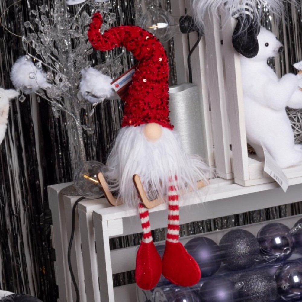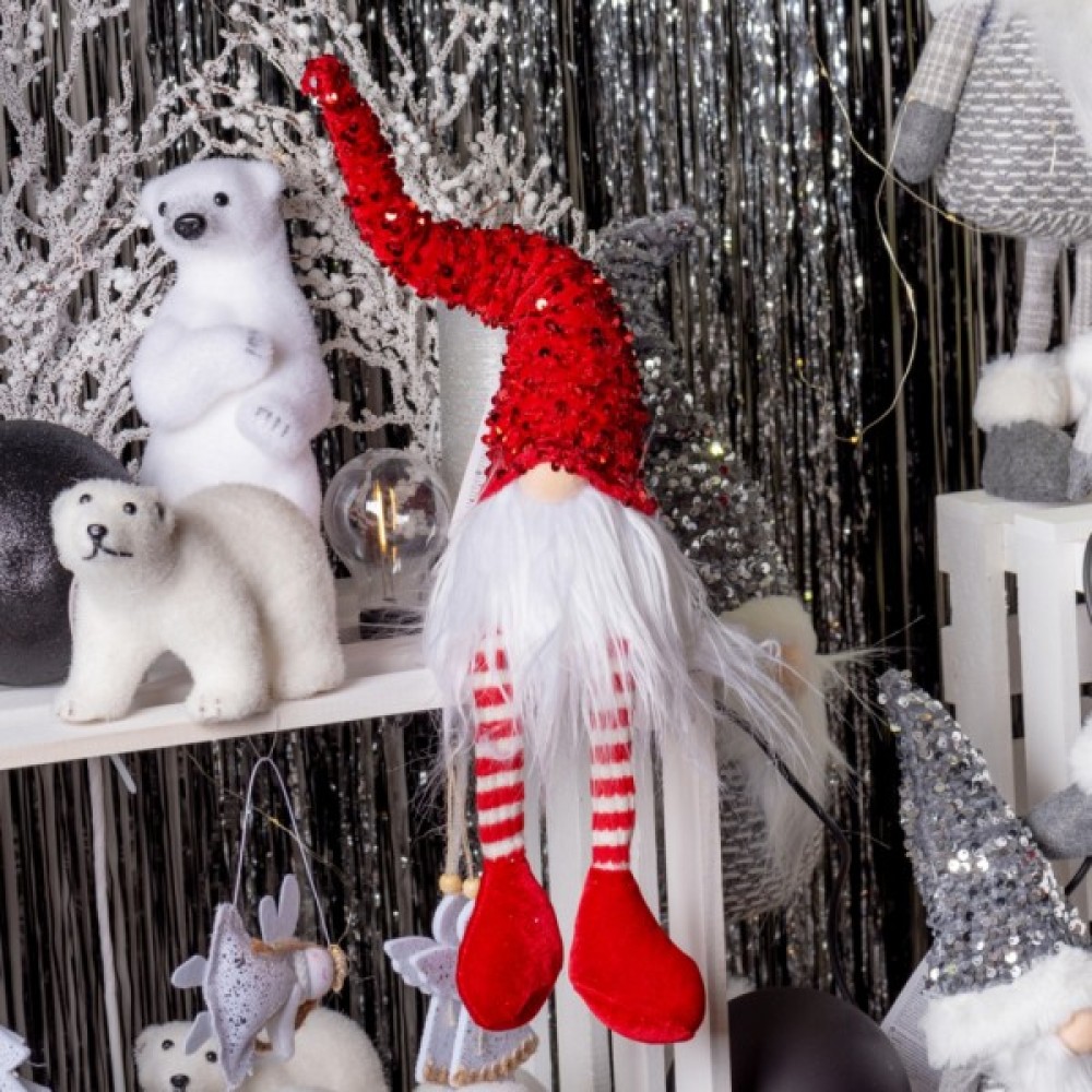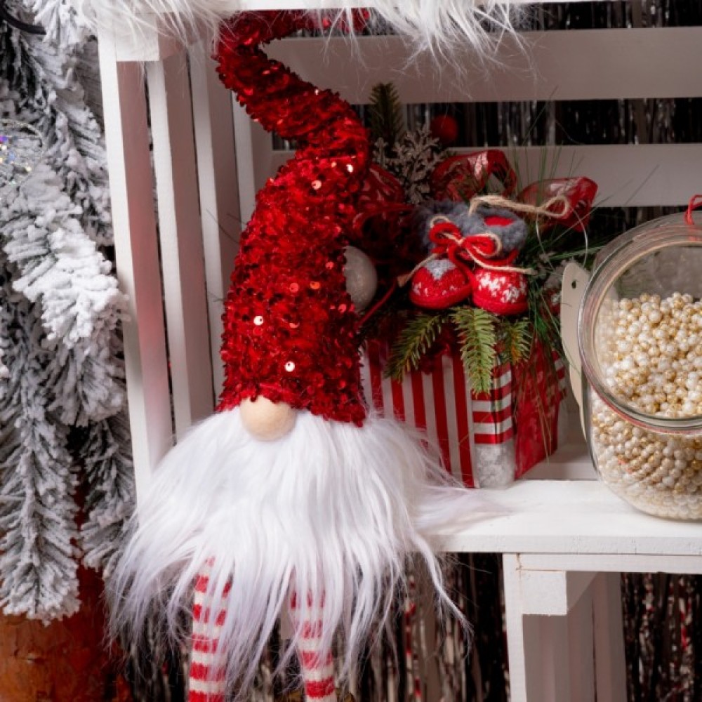 Новорічна фігурка Novogod`ko Гном, червона паєтка, 56 см, LED (973733)