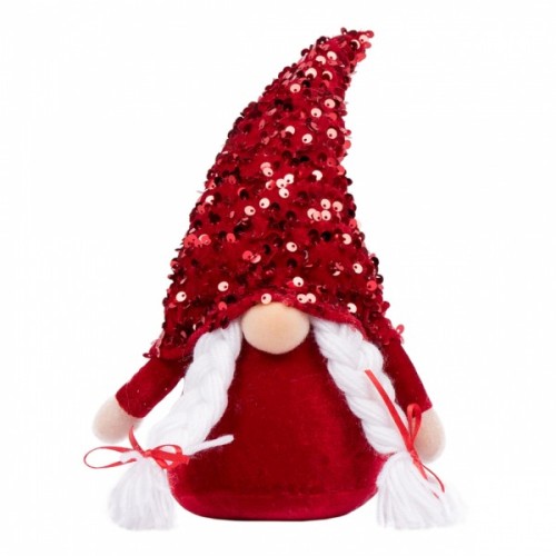 Модель Гном Дівчинка, червона паєтка, 29 см, LED