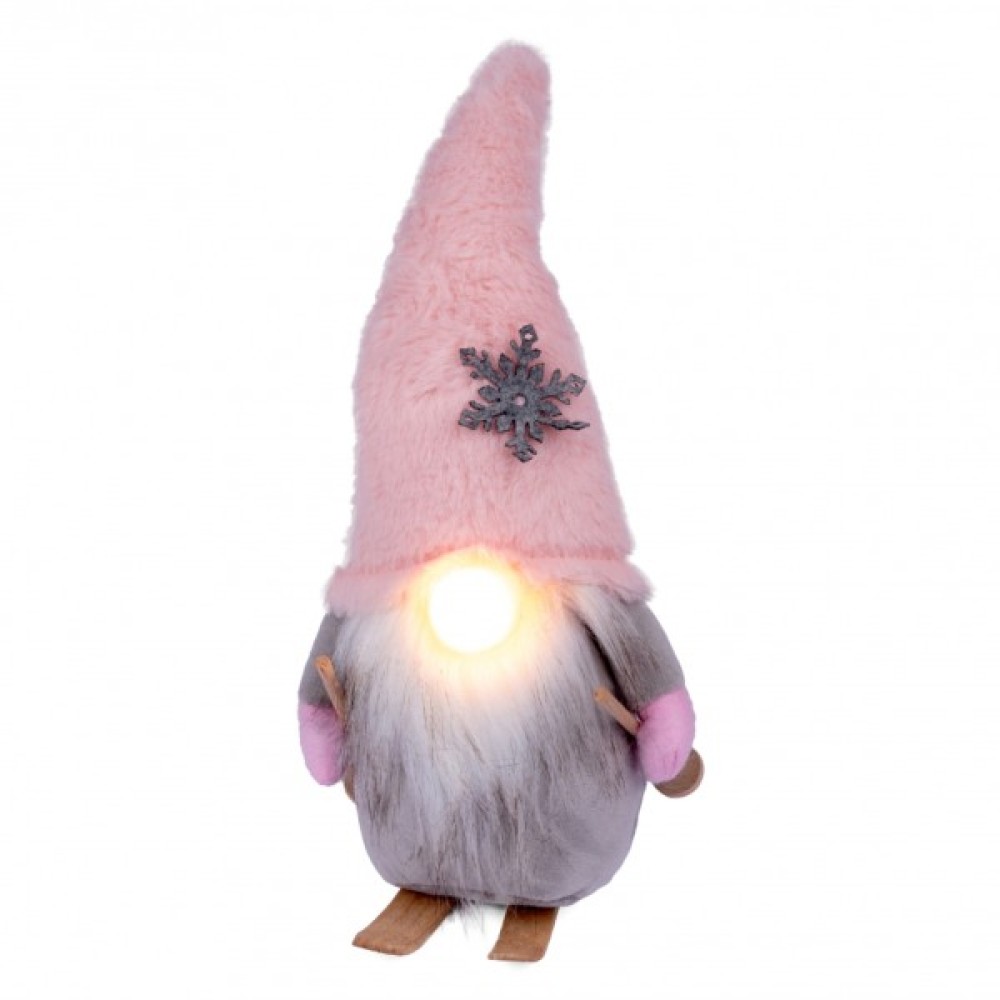 Модель Гном лижник в рожевому ковпаку, 33 см, LED ніс
