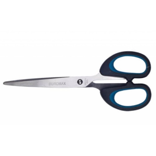 Офісні ножиці з пластиковими ручками BUROMAX 207мм, JOBMAX (BM.4534-02) призначені для нарізання картону, паперу, тканини, шкіри і т. д. Кільця ножиць ергономічної форми забезпечують зручність і комфорт у використанні. Мають плавний і м'який хід. На ножицях кільця виготовлені з пластика, так як вони не розраховані на особливе зусилля, а це дозволяє зробити їх більш зручними і легкими у використанні.
