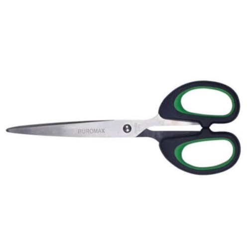 Офісні ножиці з пластиковими ручками BUROMAX 207мм, JOBMAX (BM.4534-04) призначені для нарізання картону, паперу, тканини, шкіри і т. д. Кільця ножиць ергономічної форми забезпечують зручність і комфорт у використанні. Мають плавний і м'який хід. На ножицях кільця виготовлені з пластика, так як вони не розраховані на особливе зусилля, а це дозволяє зробити їх більш зручними і легкими у використанні.
