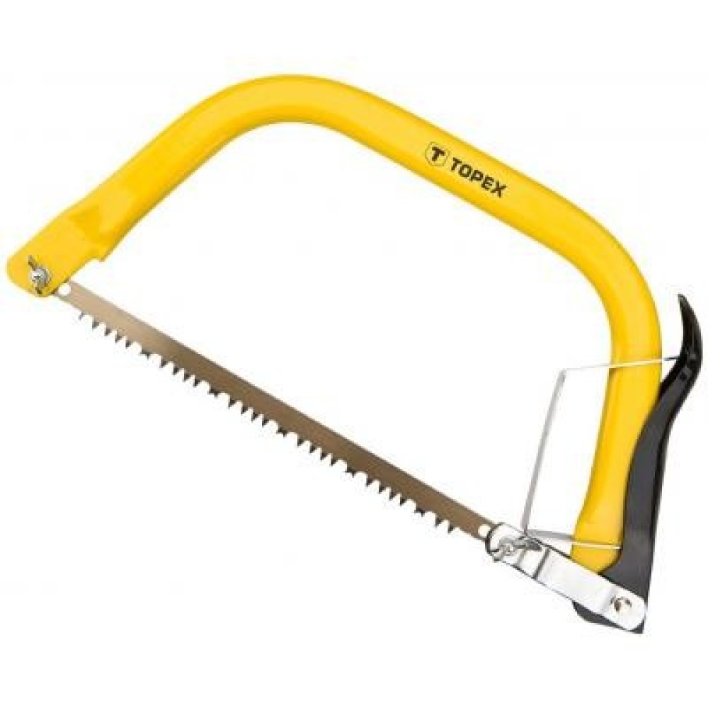 Ножівка городня - лучкова пила TOPEX (10A906) завдяки високому розташуванню штанги може розпилювати матеріали великого діаметру.