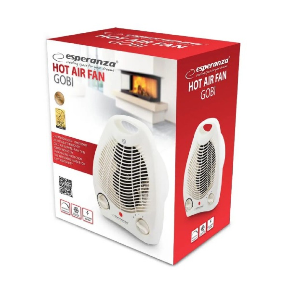 Тепловентилятор-обігрівач Esperanza Gobi EHH011 — універсальний побутовий прилад для обігріву та вентиляції приміщень. Він швидко створює комфортний мікроклімат у холодну пору року, а влітку може працювати в режимі вентилятора, забезпечуючи приємний потік прохолодного повітря.