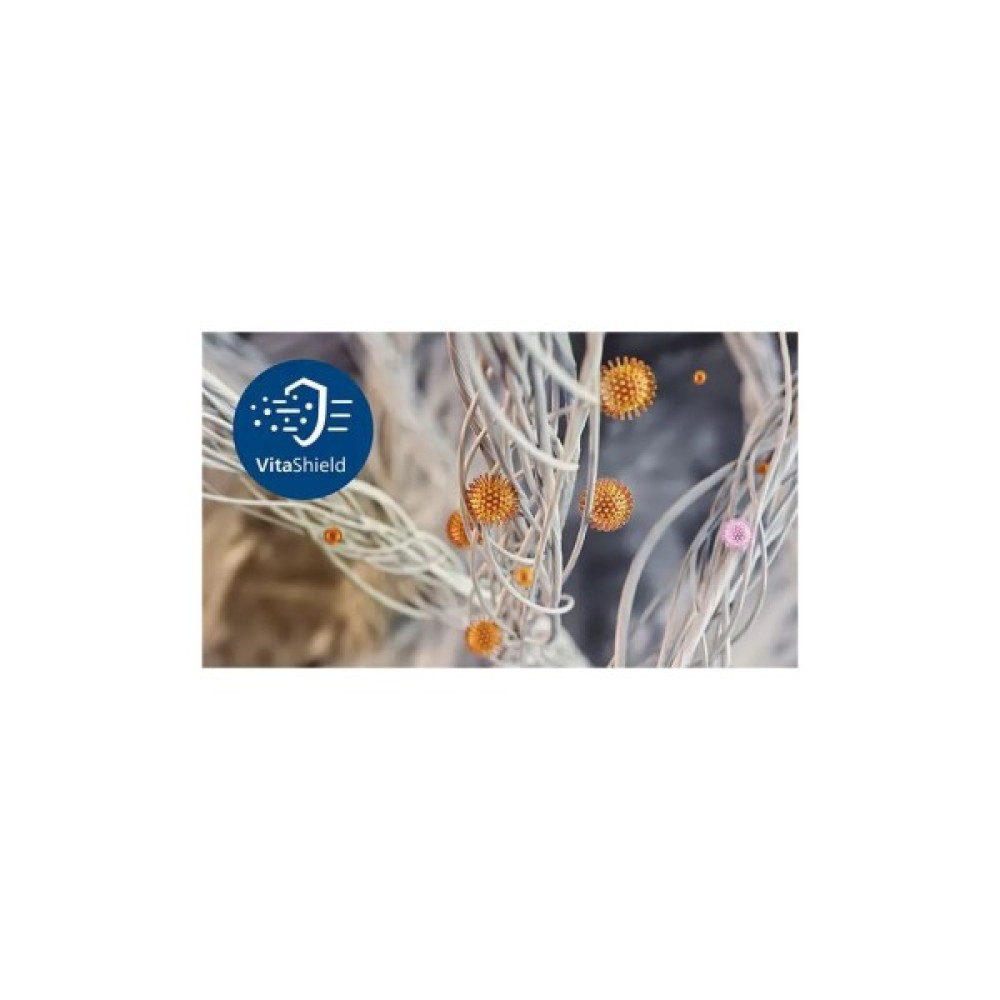 Завдяки технології VitaShield ви отримаєте чистіше повітря, ніж будь-коли. Вона вловлює аерозолі, мікроби та частинки розміром до 0,003 мікрона, що менше, ніж найменший відомий вірус. Незалежно протестовано зовнішньою лабораторією на предмет видалення вірусу H1N1 з повітря. Також протестовано на видалення 99,99% вірусу HCov-E229.
