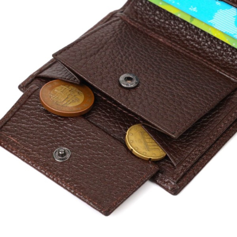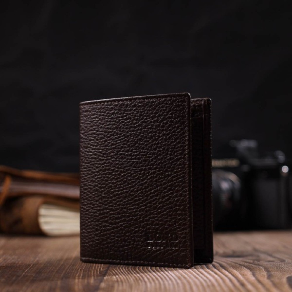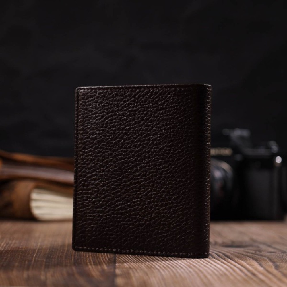 Практичний компактний гаманець вертикального типу, виготовлений з добротної натуральної шкіри.