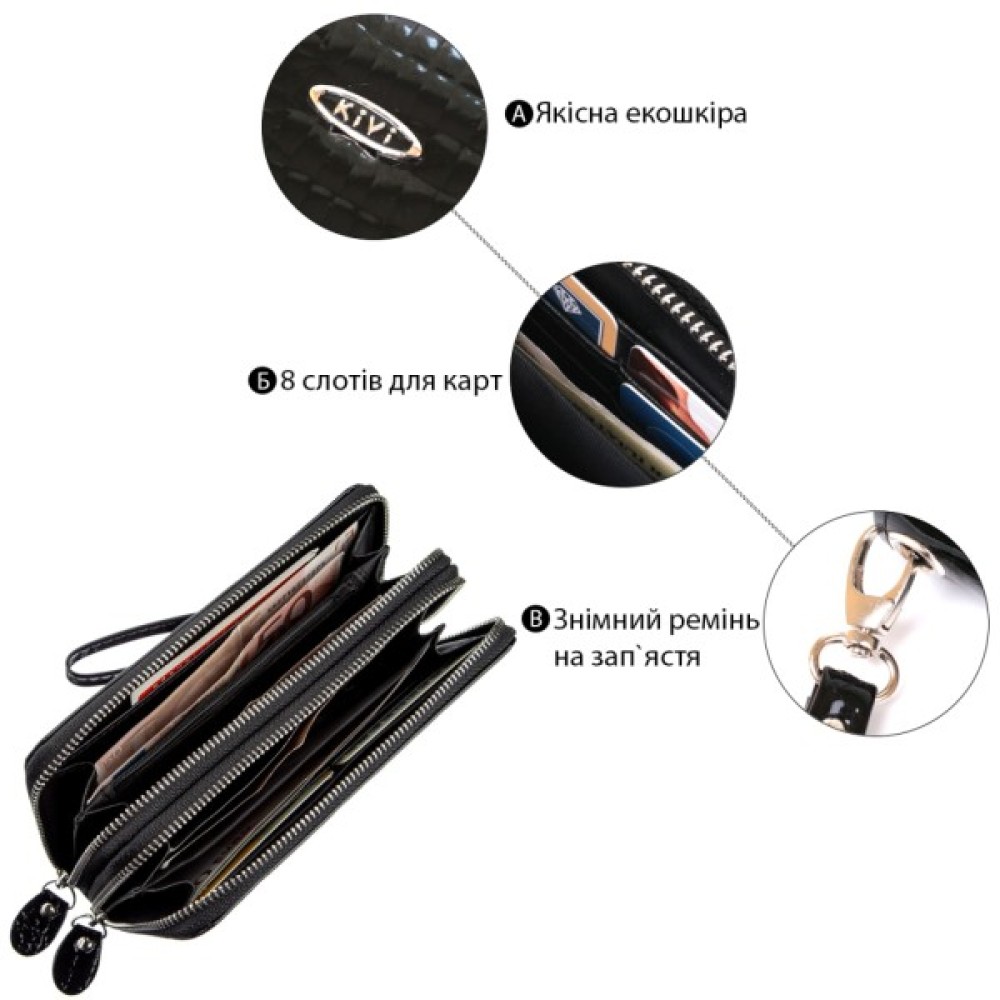 У ближньому: 2 відділення для банкнот, 1 відділення на блискавці, 2 відкриті кишені, 8 слотів для кредиток;