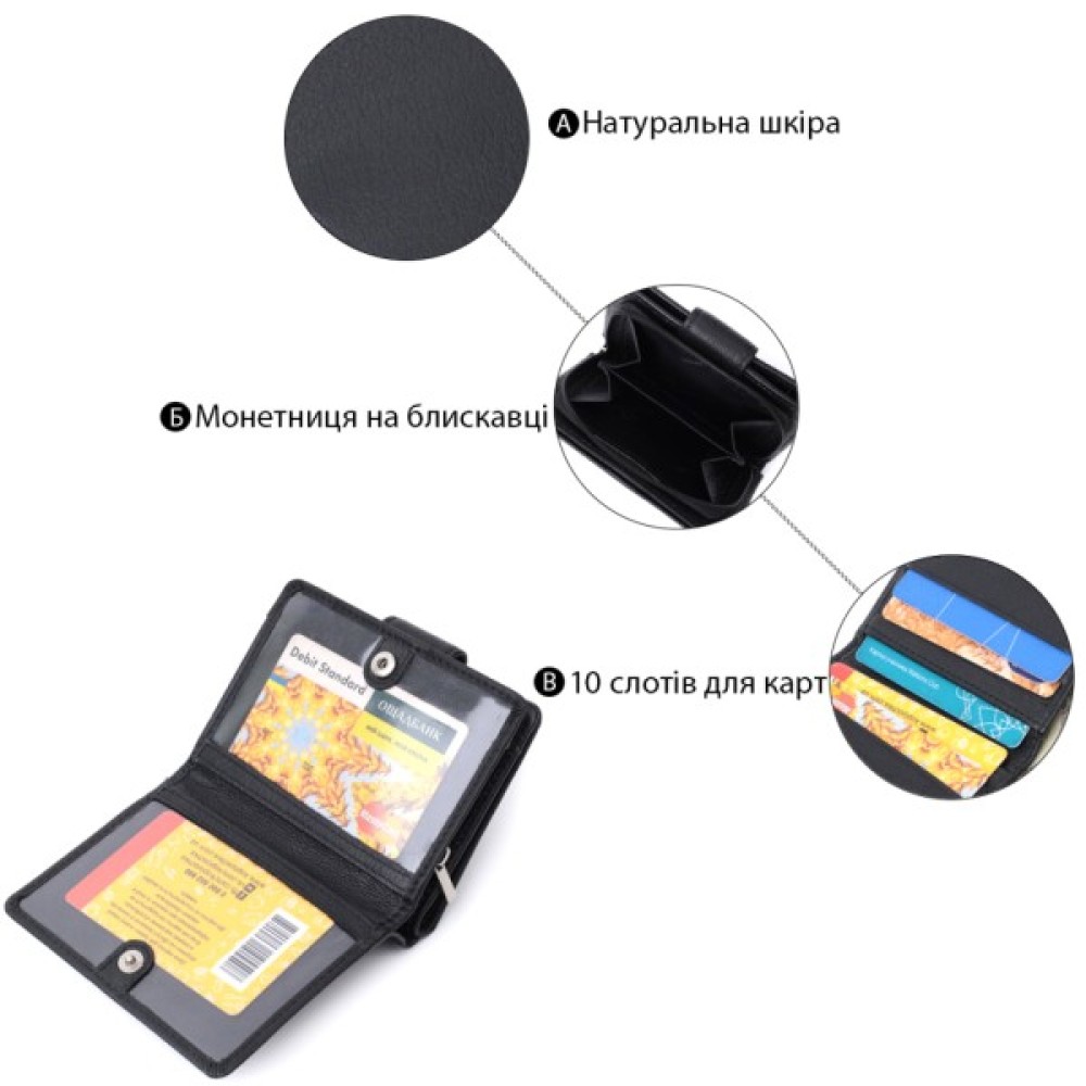 Ви легко помістите в нього паперові купюри, монети, документи і картки.