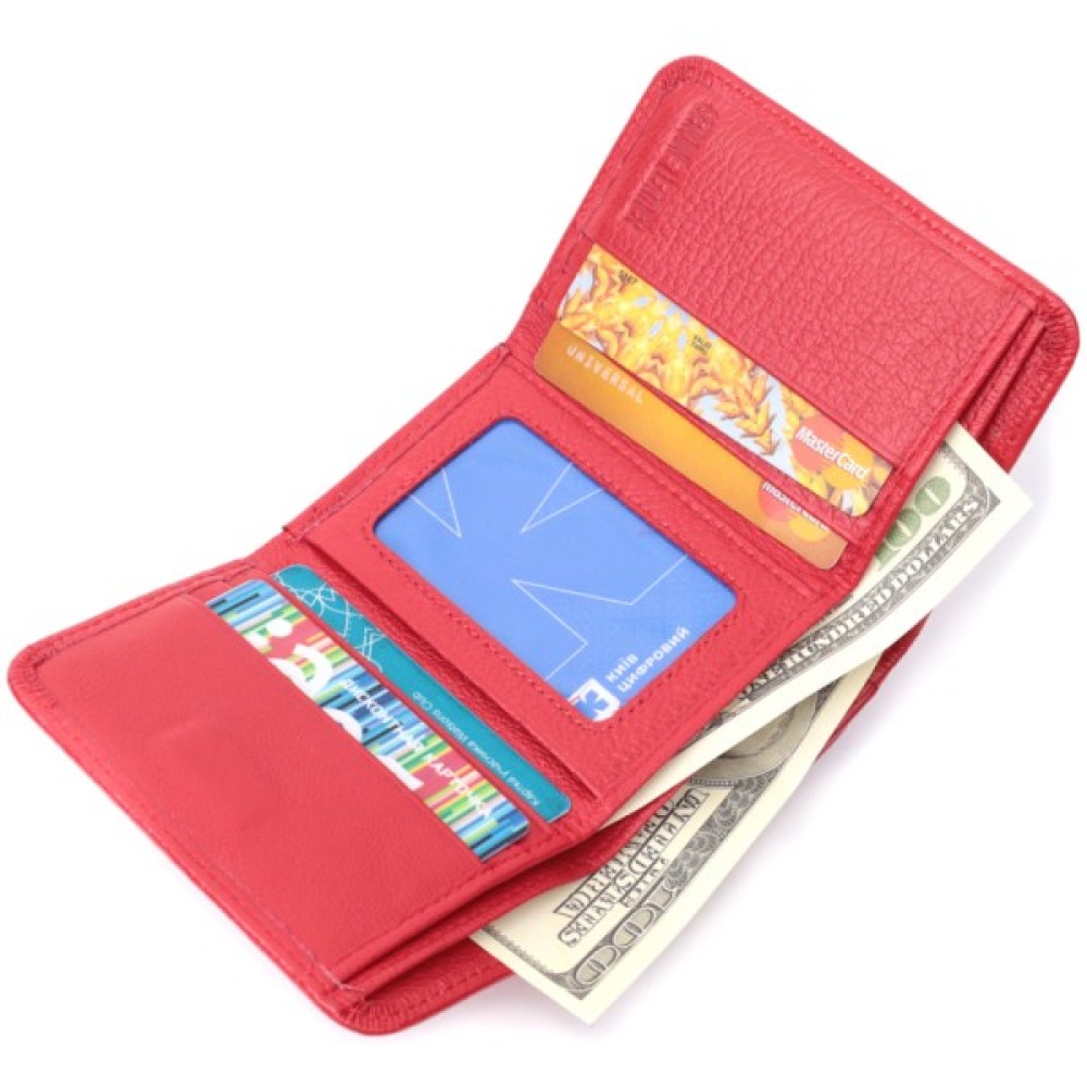 Компактний гаманець для яскравих дівчат, виготовлений із високоякісної шкіри флотар, що має благородну зернисту фактуру та високу зносостійкість.