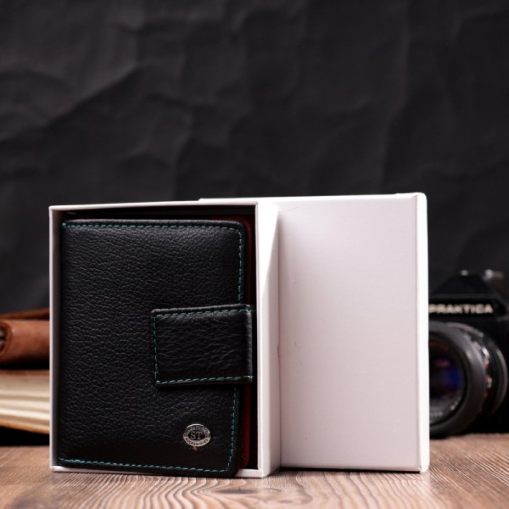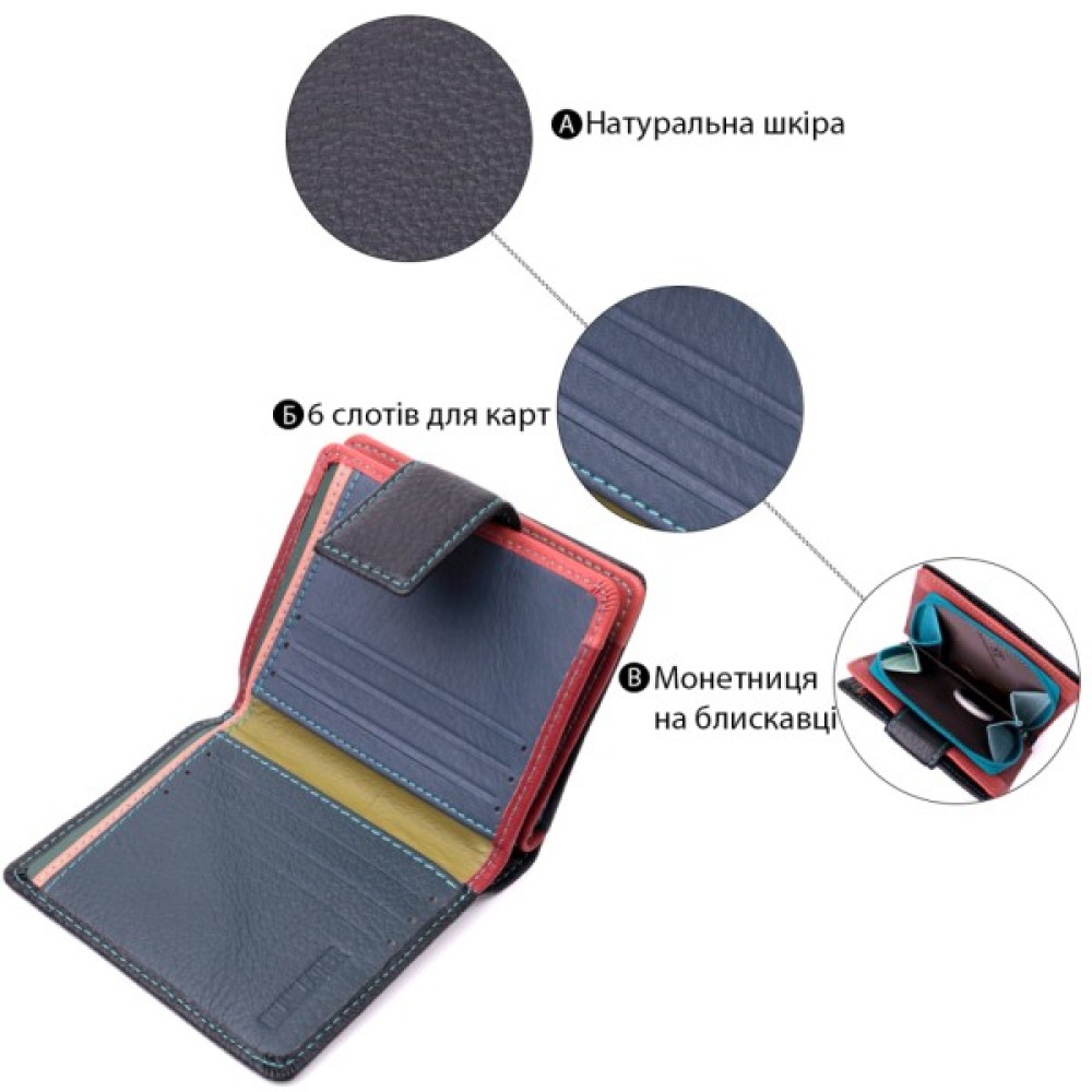 Гаманець чорного кольору зовні та різнобарвний усередині, що дуже стильно та сучасно.