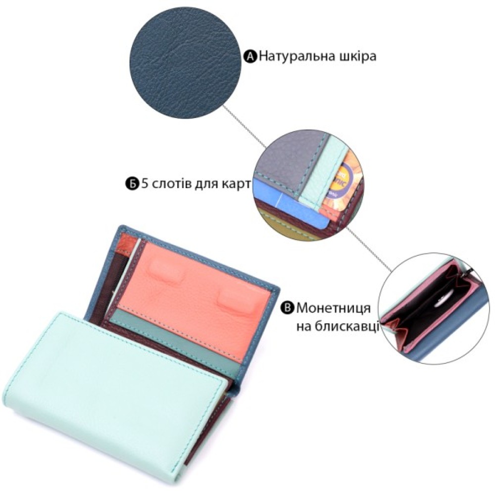 Компактне жіноче портмоне в три складання з натуральної шкіри найвищої якості.