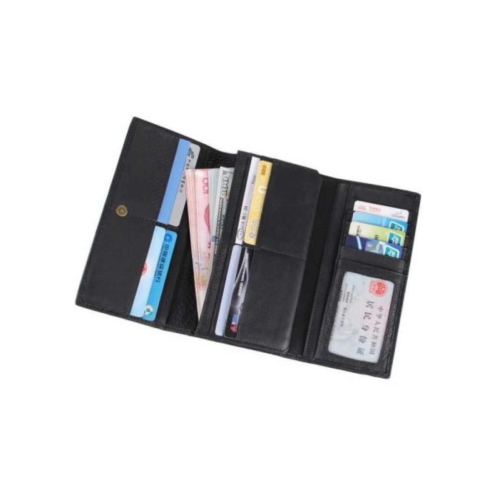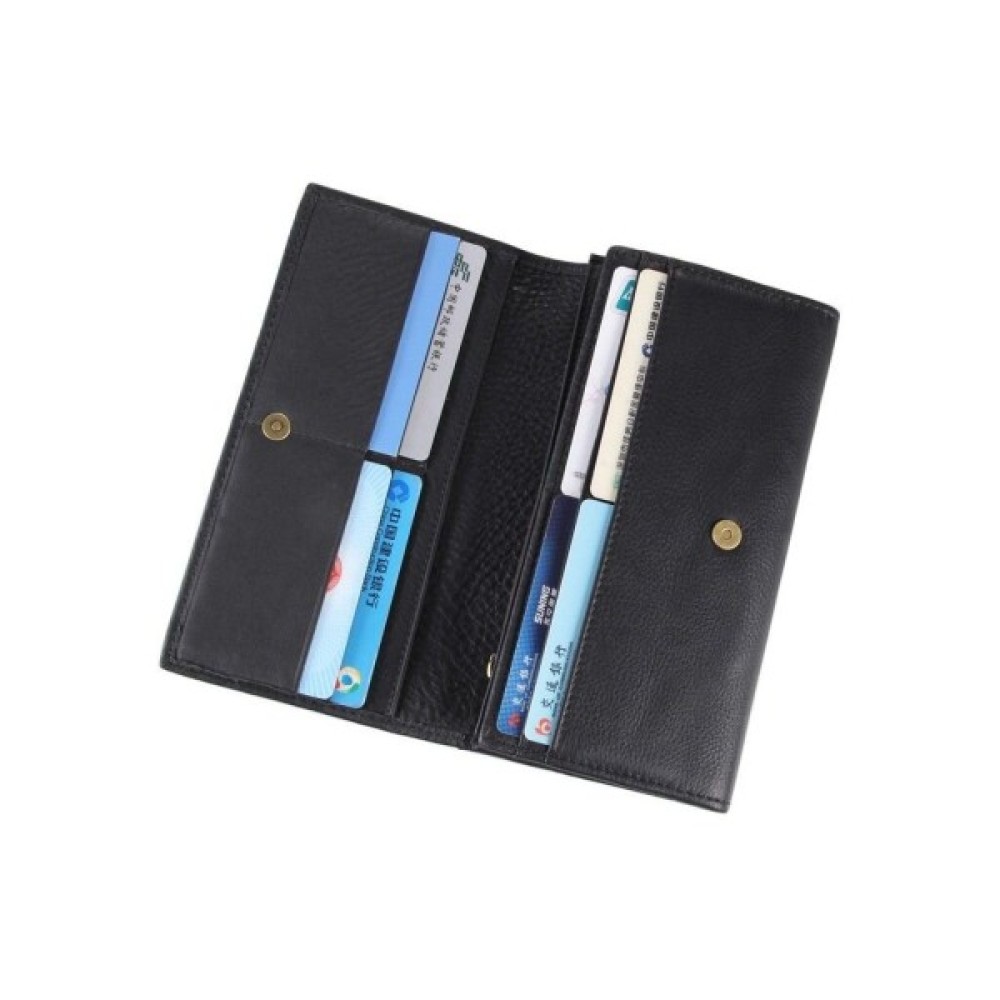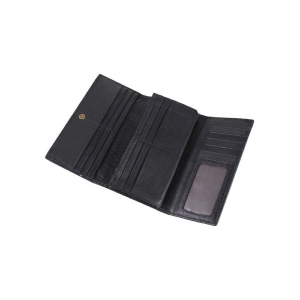 Чудовий гаманець чорного кольору. Цей аксесуар виконаний з натуральної шкіри та представлений у класичному стилі, при цьому його дизайн підкреслює аристократичність власника.