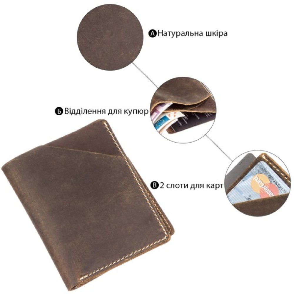Компактний гаманець мінімального розміру темно-коричневого кольору.