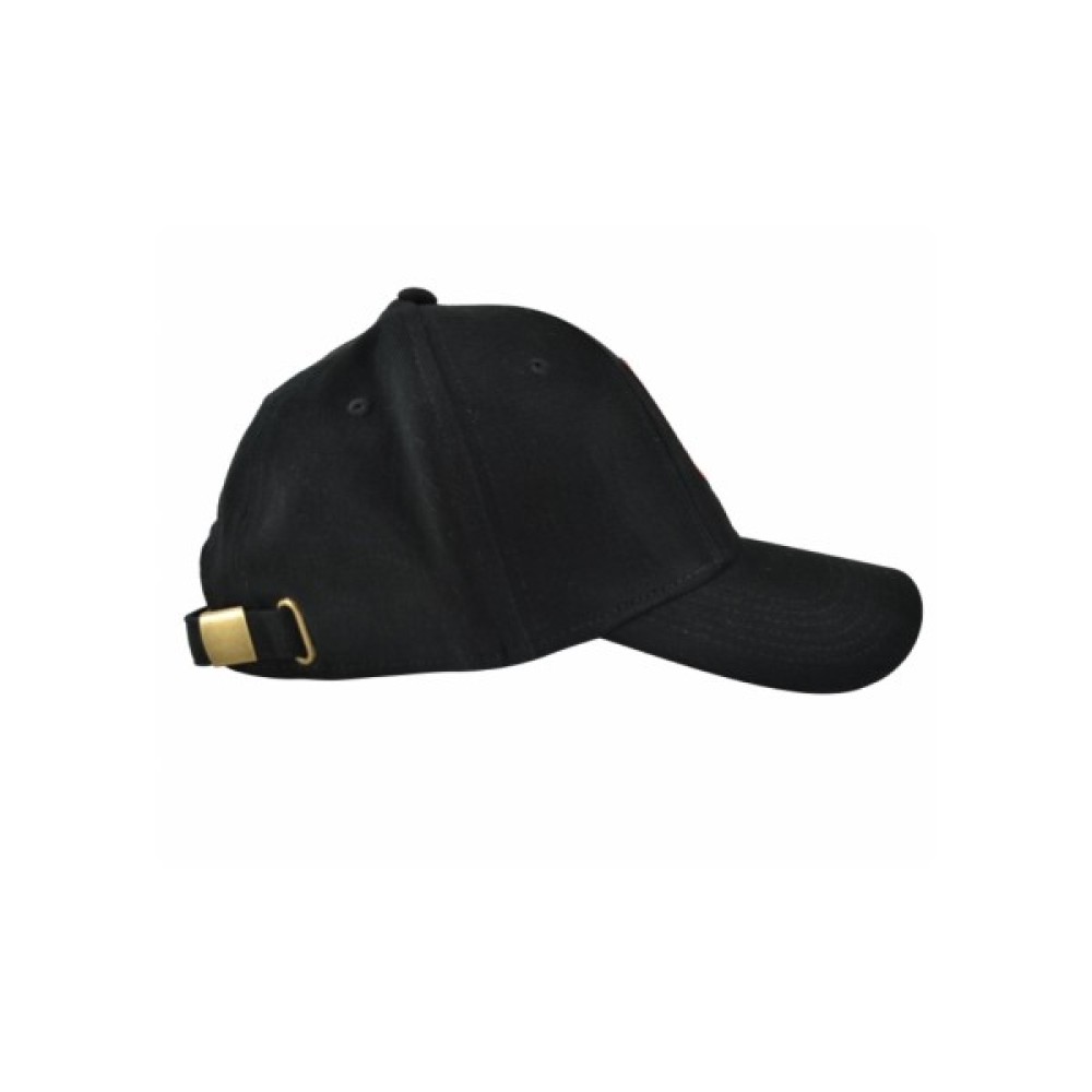 Латунна пряжка надійно фіксує бавовняний ремінець для потрібного розміру бейсболки.