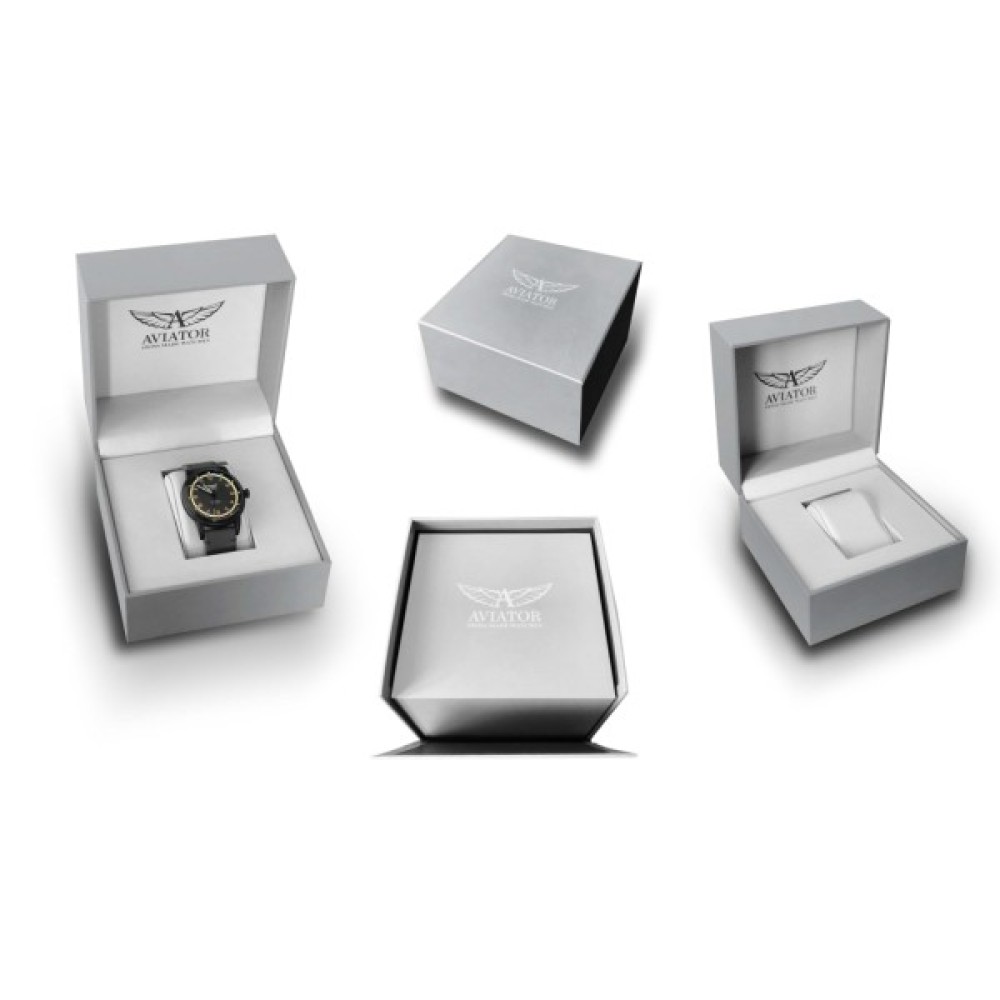 Інструментальний циферблат: Циферблат відрізняється багатофункціональністю і різноманітністю обробки і забезпечує три рівні інформації: аеронавігаційну логарифмічну шкалу на внутрішньому обідку, що обертається, час і секундомір на трьох лічильниках циферблата з центральною секундною стрілкою хронографа. Лінійка та лічильники хронографа надають годиннику інструментального вигляду. Циферблат кожної моделі годинника AVIATOR вигідно відрізняється якісним високоточним проектуванням та винятковим рівнем виконання.