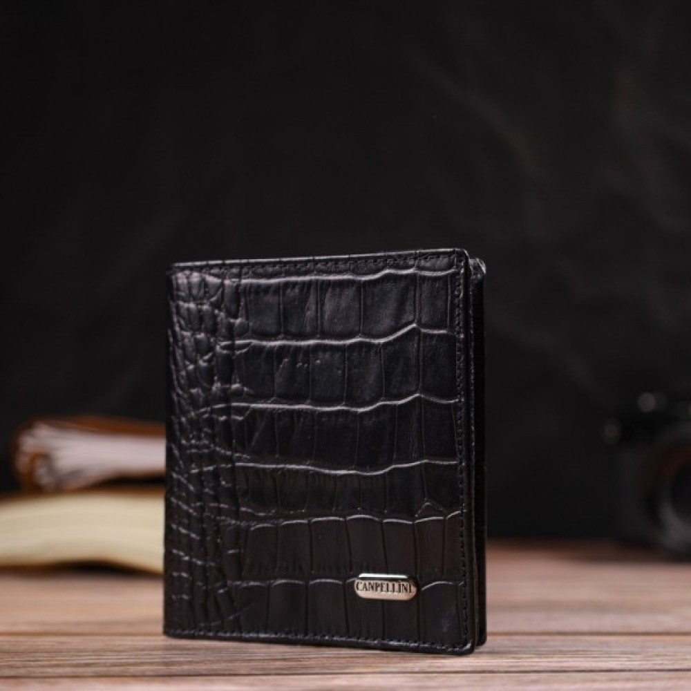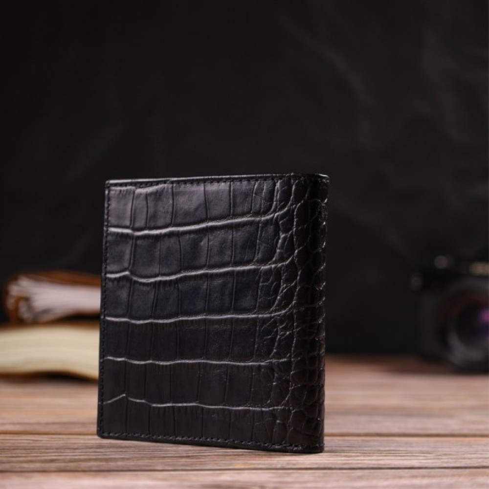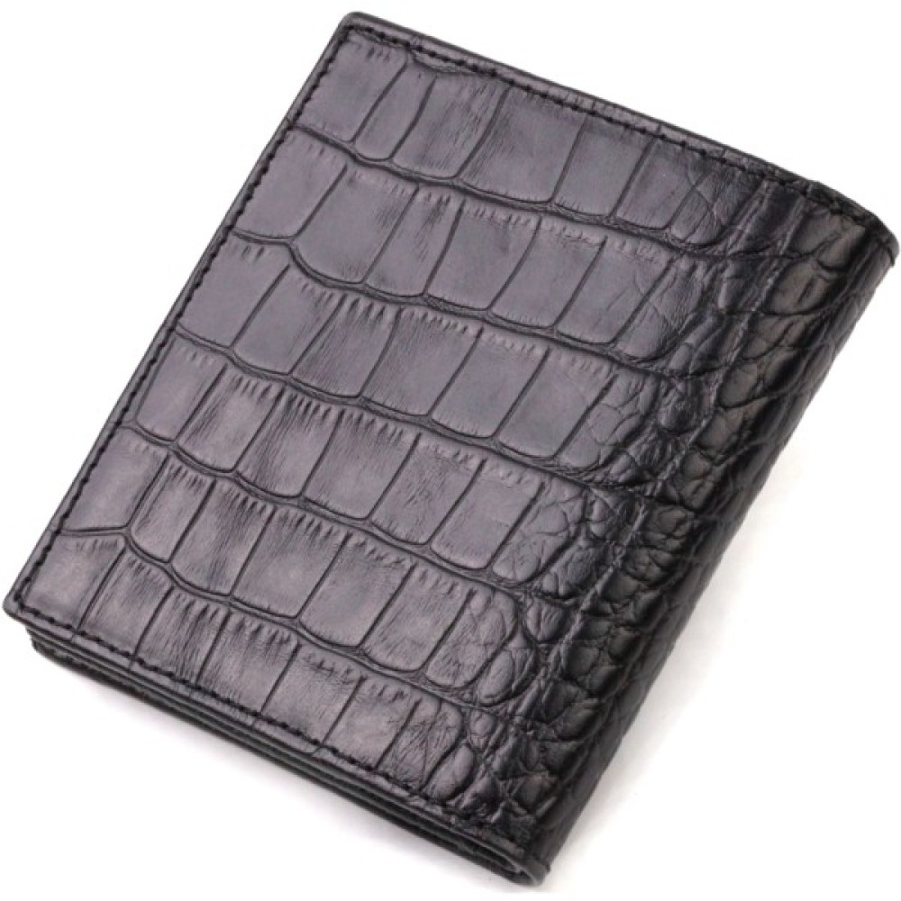 Компактний чоловічий гаманець, вертикального формату із натуральної зернистої фактурної шкіри.