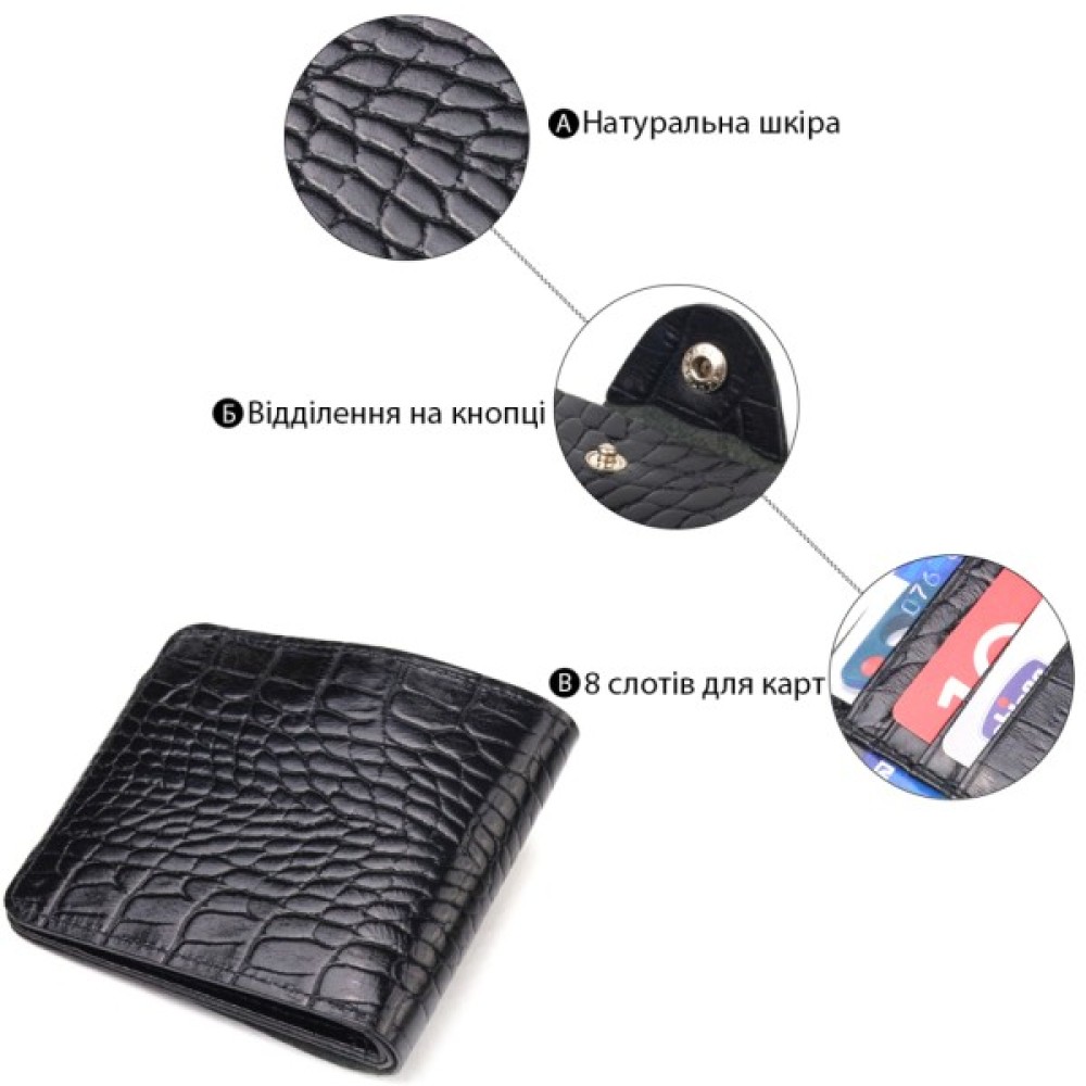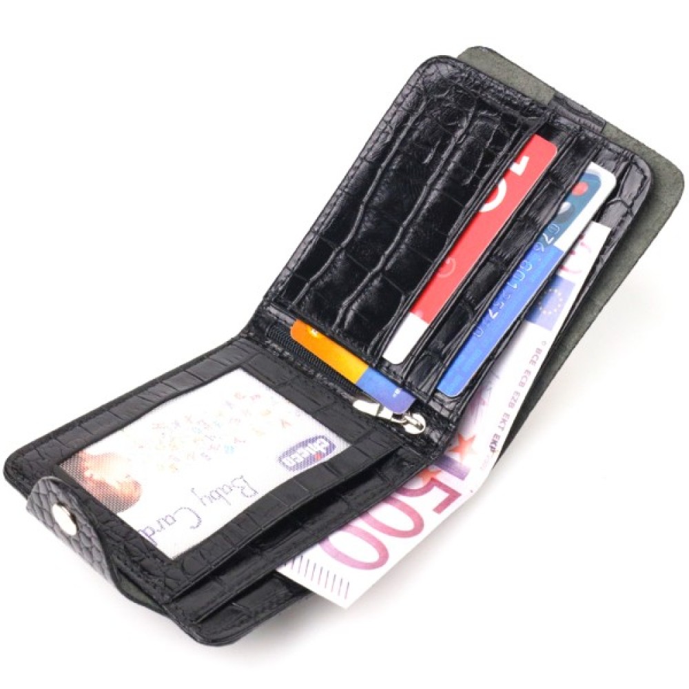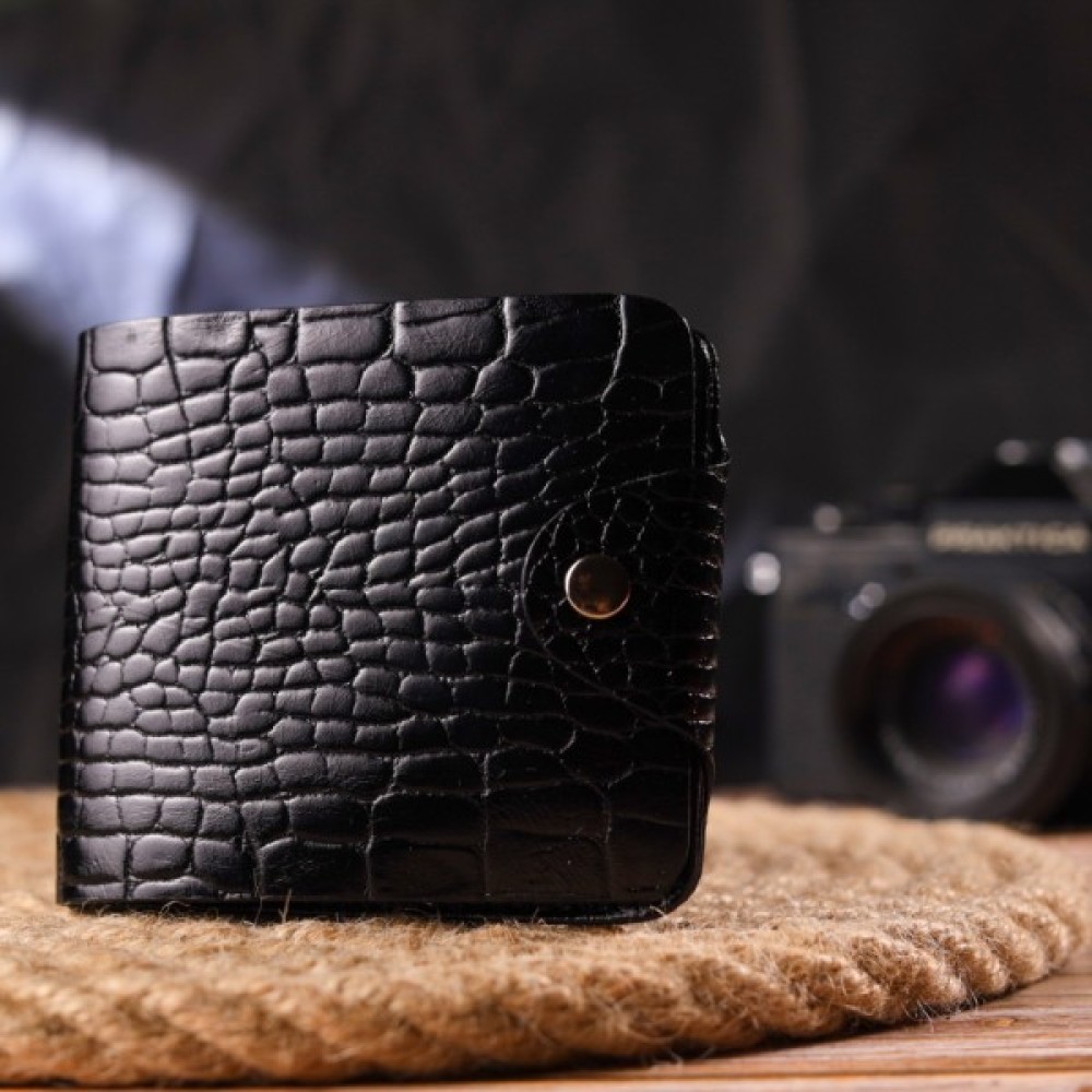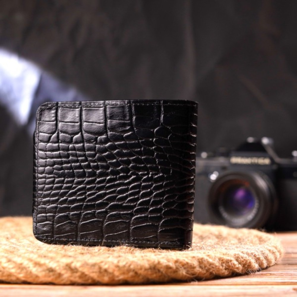 Стильний чоловічий гаманець із натуральної фактурної шкіри з тисненням під крокодила.