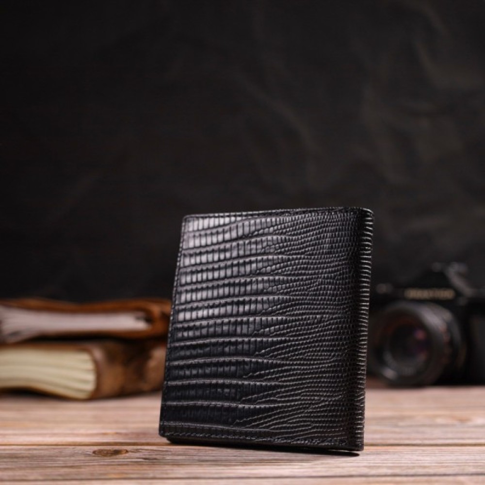 Фактурний компактний чоловічий гаманець, вертикального формату, із натуральної шкіри з тисненням.