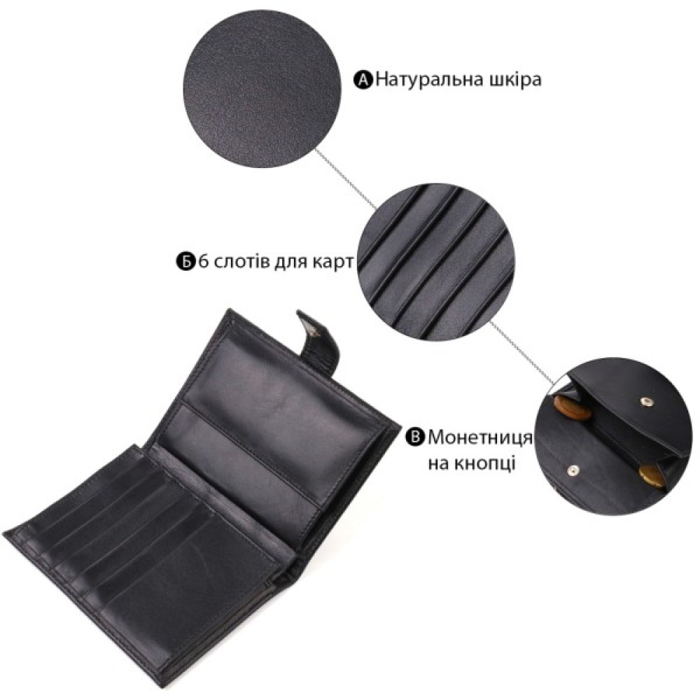 Особливості подвійне складання; сітчаста кишеня; закривається на хлястик з кнопкою; потайні кишені; з монетницею; для карт