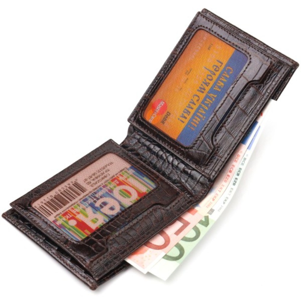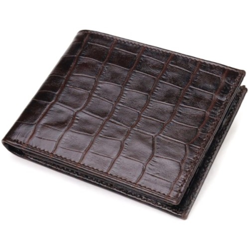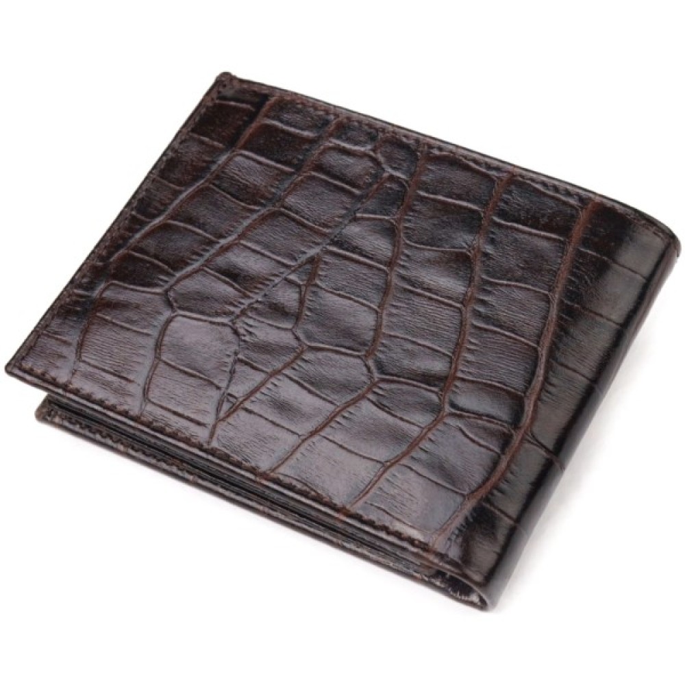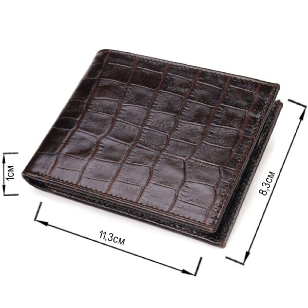 Компактний чоловічий гаманець з натуральної фактурної шкіри з тисненням під крокодила.