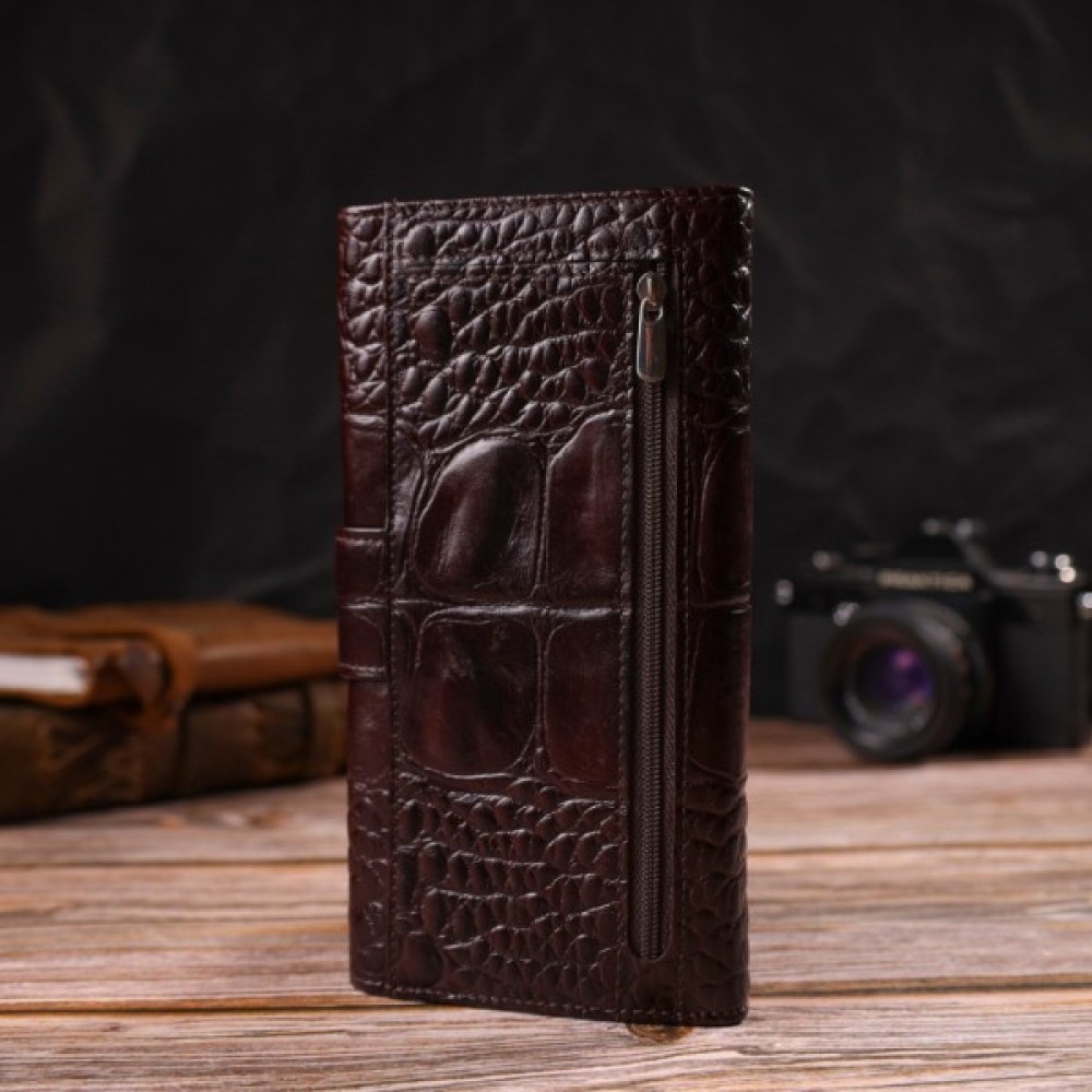 Практичне портмоне для стильних та впевнених у собі людей, виріб із натуральної шкіри з тисненням під крокодила.