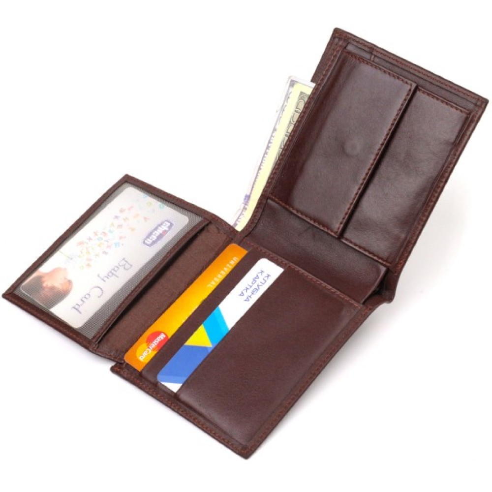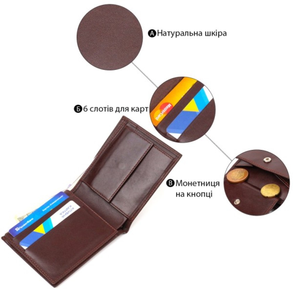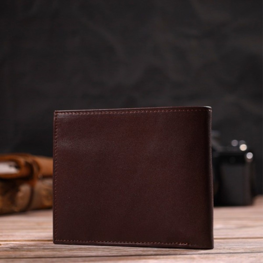 Практичний чоловічий гаманець із натуральної гладкої шкіри.