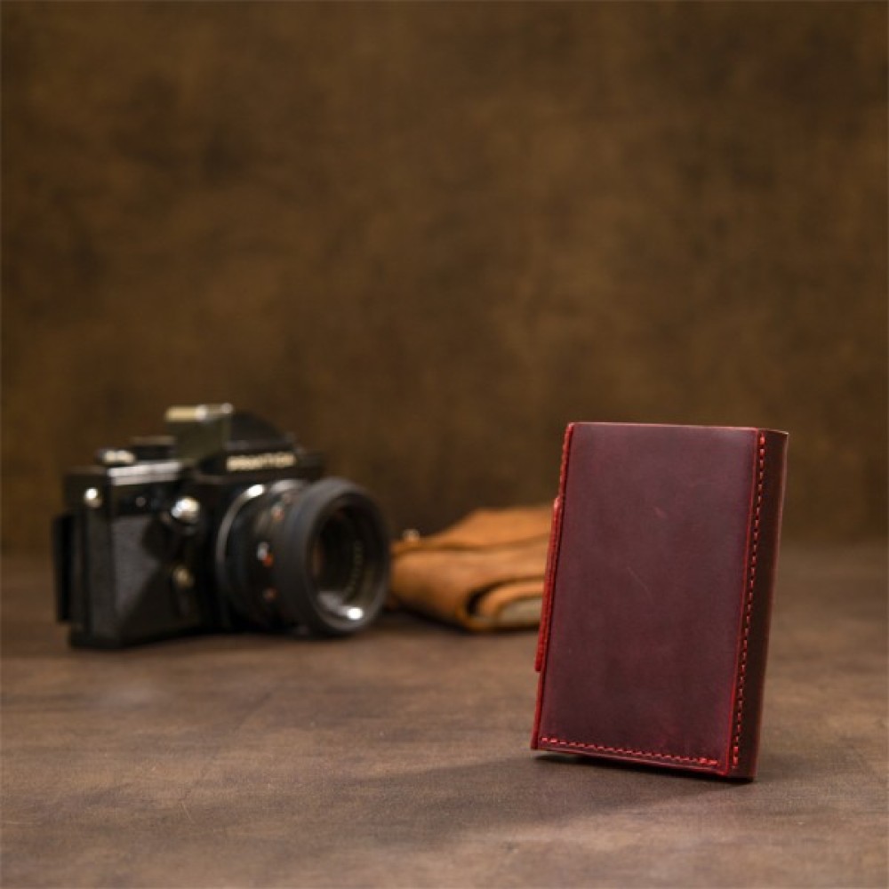 Практичний і дуже стильний портмоне з натуральної шкіри . Має красиву фактуру з старовинним ефектом, що дуже модно сьогодні. Усередині є 6 окремих слотів для візитних та кредитних карток, а також одне містке відділення для банкнот. Упакування – фірмовий чохол.