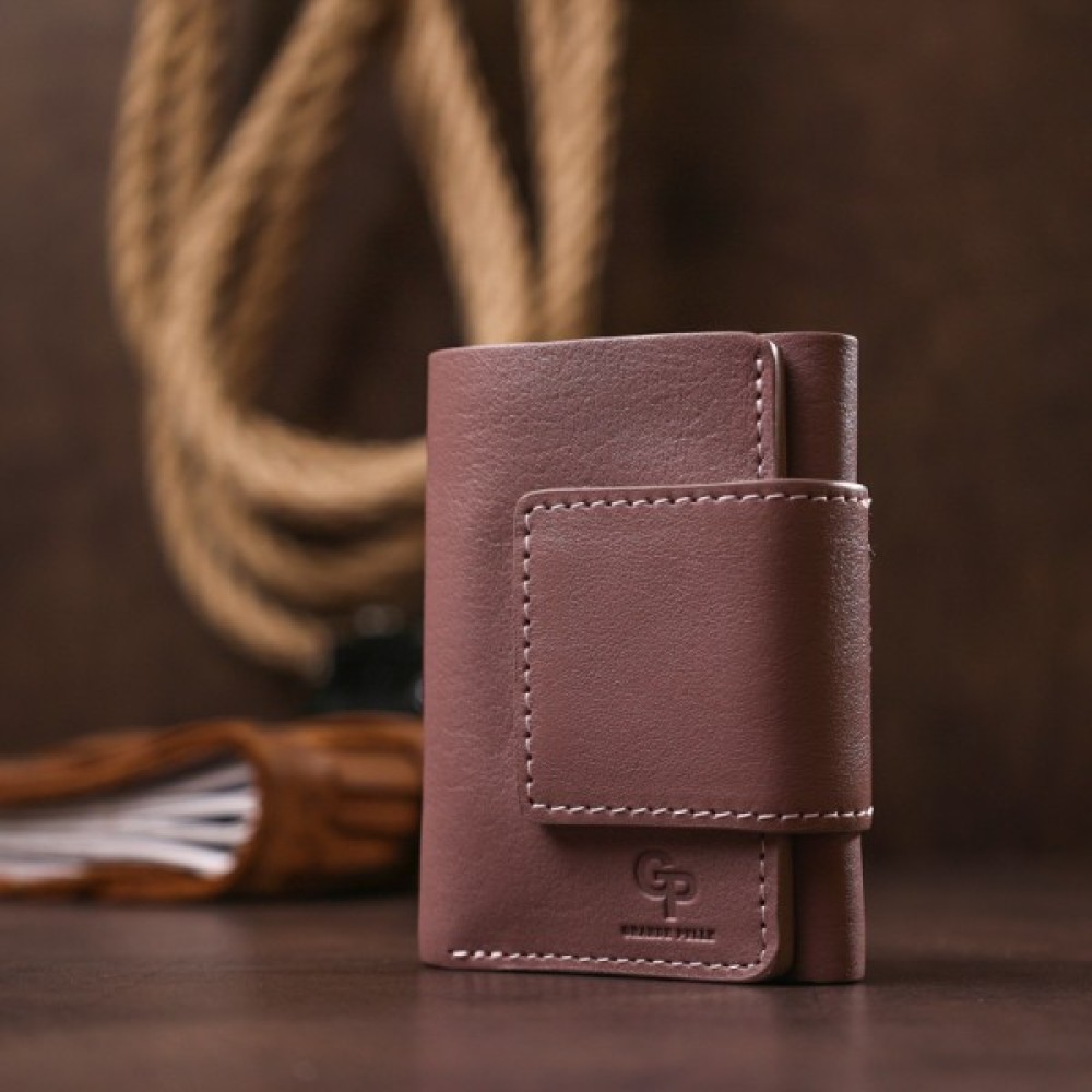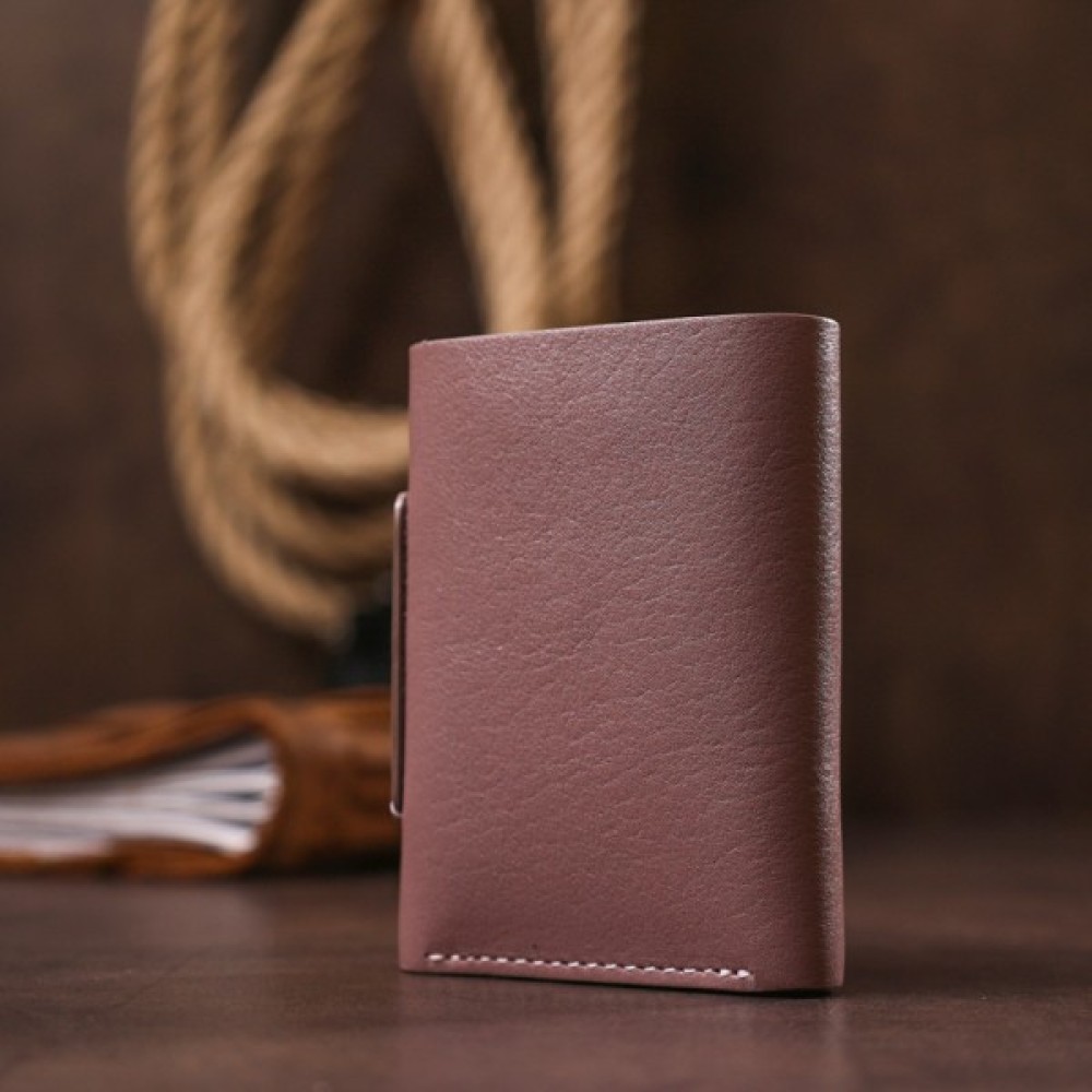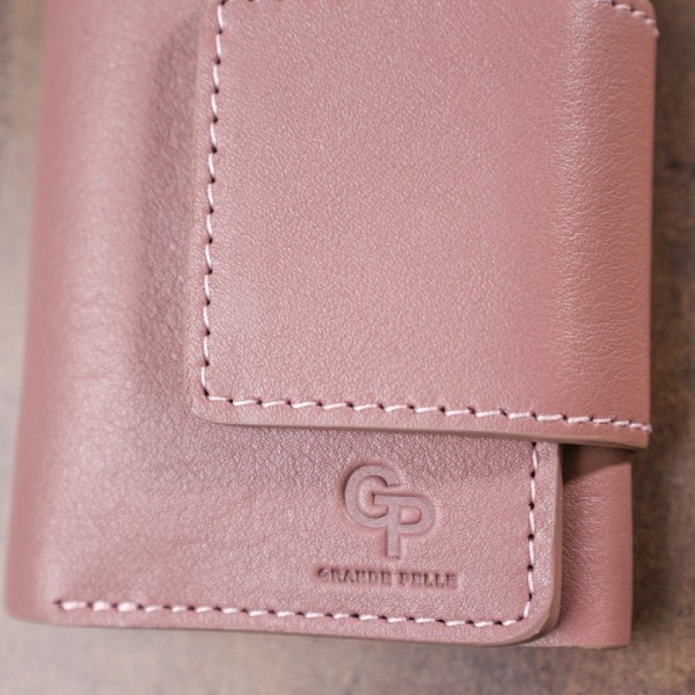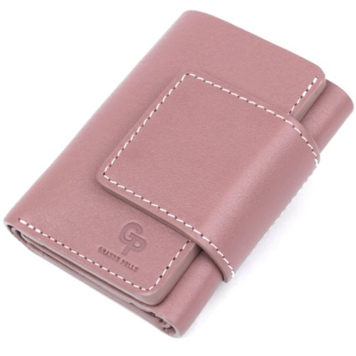 Дуже красиве та стильне жіноче портмоне в рожево-сірому кольорі, що виглядає досить незвичайно та ексклюзивно. Матеріал виготовлення – натуральна шкіра високої якості з покращеними експлуатаційними характеристиками. Внутрішнє наповнення представлене у вигляді основного відділення на всю довжину для купюр та слотів для пластикових карток. Закривається на магніт.