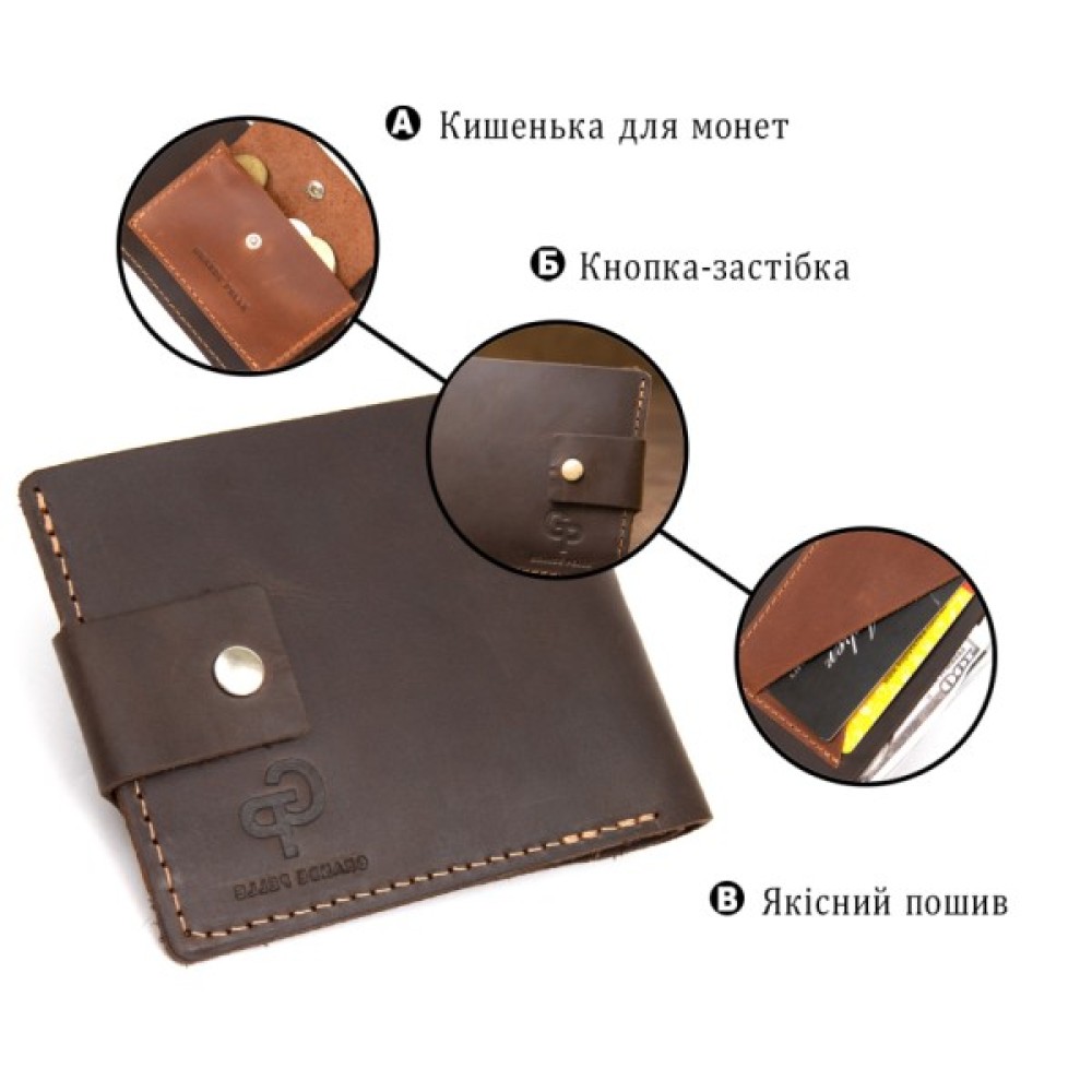 Компактне чоловіче портмоне з високоякісної вінтажної шкіри.