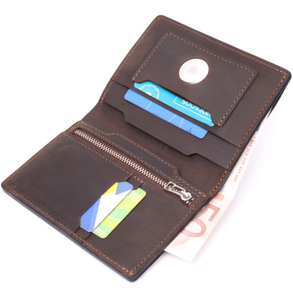 Портмоне Grande Pelle Шкіряне з тримачем для Apple AirTag Коричневе (11624)