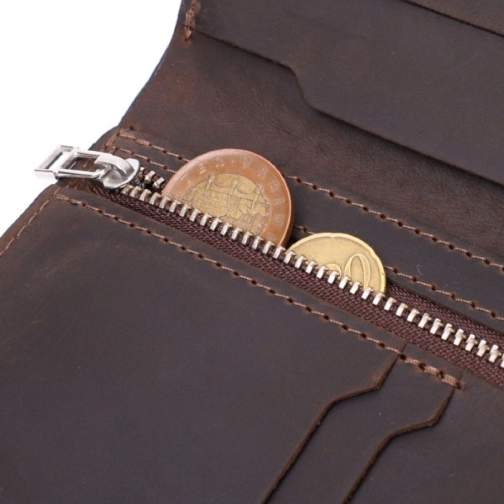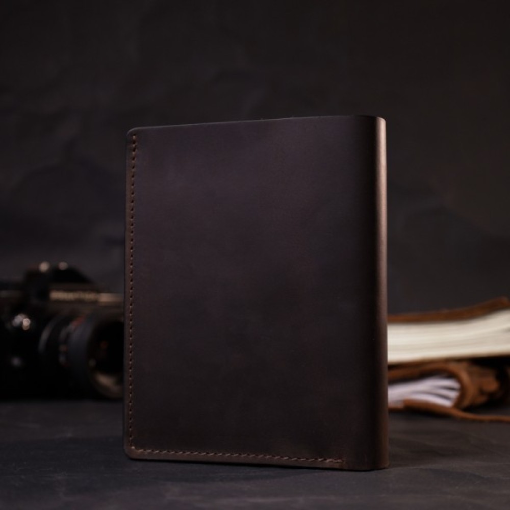 Цікаве портмоне виконане виключно з натуральної італійської шкіри найвищої якості. По краях аксесуар прошитий рівним рядком в дизайн виробу.