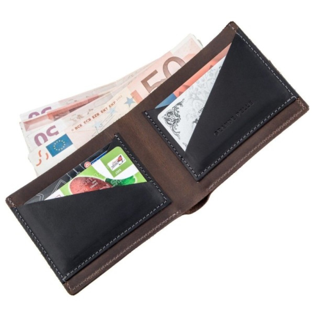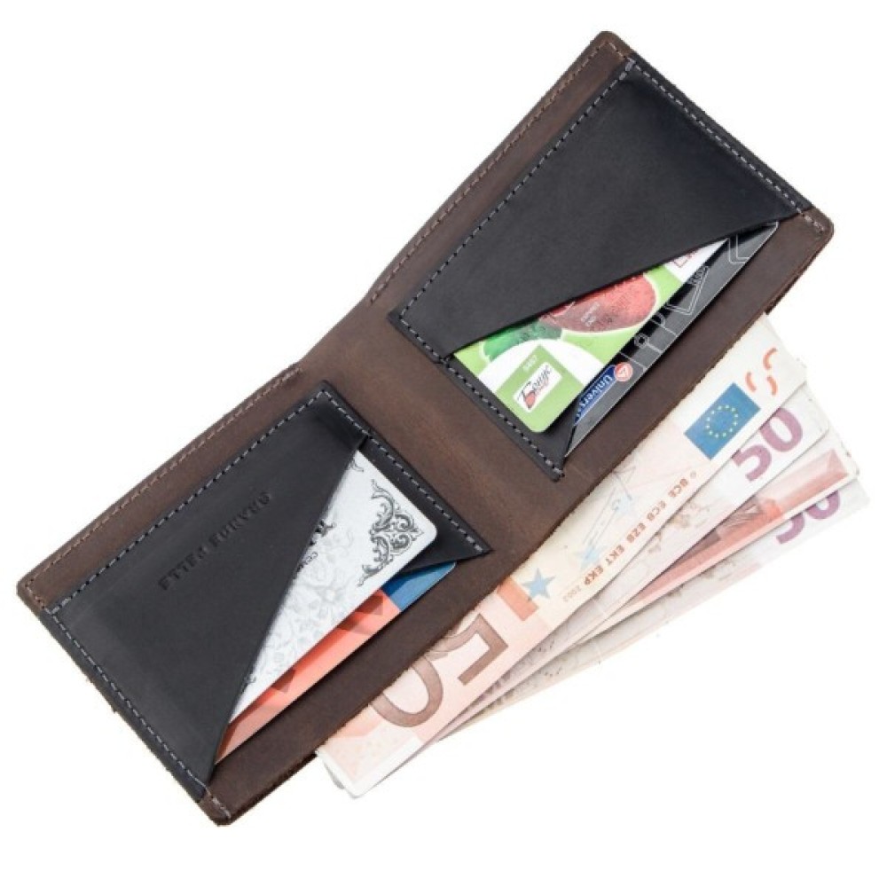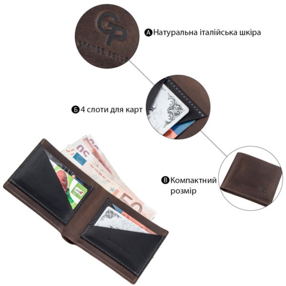 Слоти для кредиток всередині портмоне виготовлені з натуральної шкіри чорного кольору.