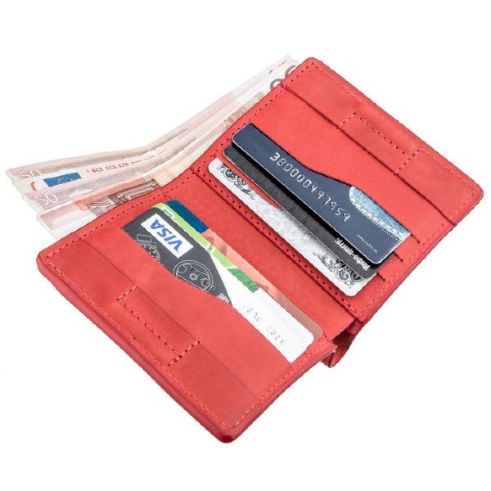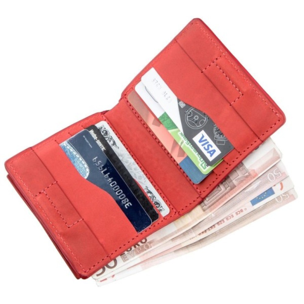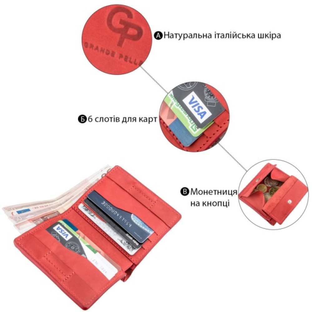 Особливістю моделі є накладна монетниця на зовнішній стороні, яка закривається на кнопку і має оригінальну форму. Ідеальний варіант для тих, хто любить яскраві і оригінальні аксесуари. На лицьовій стороні портмоне є тиснений логотип бренду. По краях модель прошита червоним рівним рядком. Закривається аксесуар надійним магнітом. Шкіра м'яка і приємна на дотик. У комплекті з аксесуаром йде фірмова картонна коробка. Портмоне стане прекрасним рішенням для подарунку близькій людині.