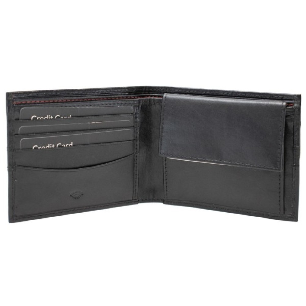 Модель має дві секції для купюр, чотири слоти для карток, відділення для монет на кнопці та дві додаткові приховані кишені. Всередині — делікатна підкладка з поліестеру, а зовні — лаконічне тиснення логотипу Semi Line. Особливістю цієї моделі є технологія RFID-захисту, що блокує несанкціоноване зчитування карт — ідеальне рішення для захисту особистих фінансів у місті або в подорожі.
