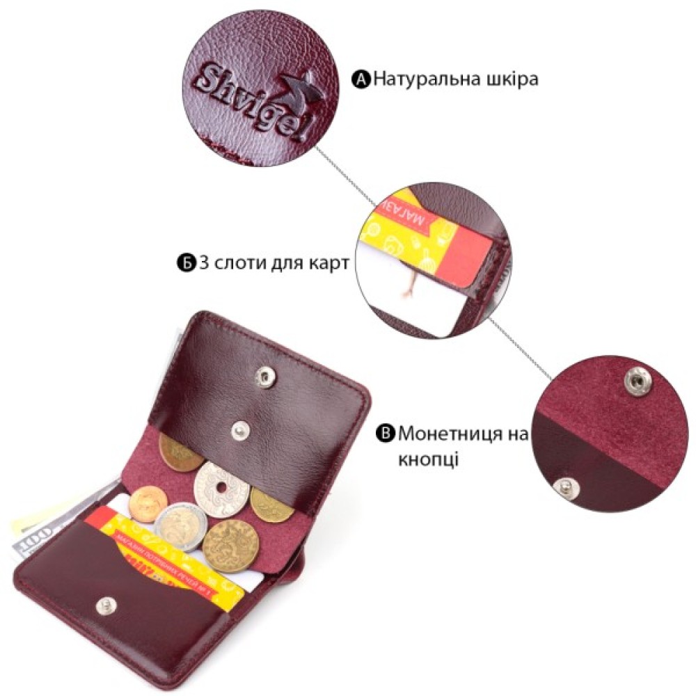 Портмоне, Shvigel, Шкіряне, Вишневе, 16609